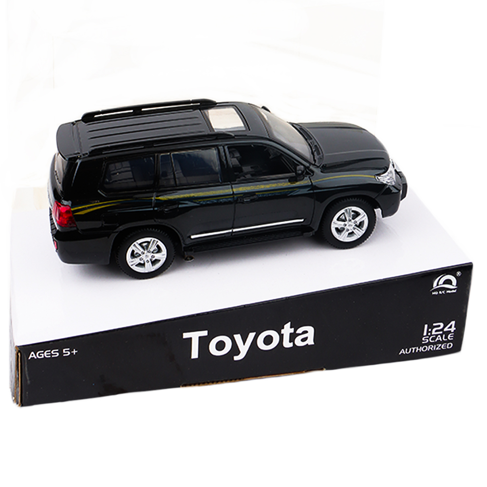 سيارة تويوتا مجسمة بمقياس 1:24، مصممة بشكل واقعي مع لون أسود أنيق، مناسبة للأطفال من عمر 5 سنوات فأكثر