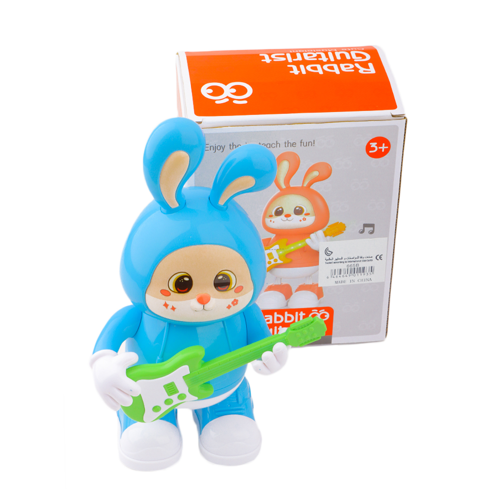 لعبة الأرنب الموسيقي تأتي بتصميم لطيف على شكل أرنب ملون يحمل جيتارًا صغيرًا، وتعمل على إصدار أصوات موسيقية مرحة عند تشغيلها، مما يضيف أجواء من المتعة والتسلية للأطفال. تساعد هذه اللعبة على تنمية الحس الموسيقي لدى الطفل وتعزيز التفاعل الحركي والبصري، كما أنها خيار مثالي لإدخال البهجة والمرح في وقت اللعب