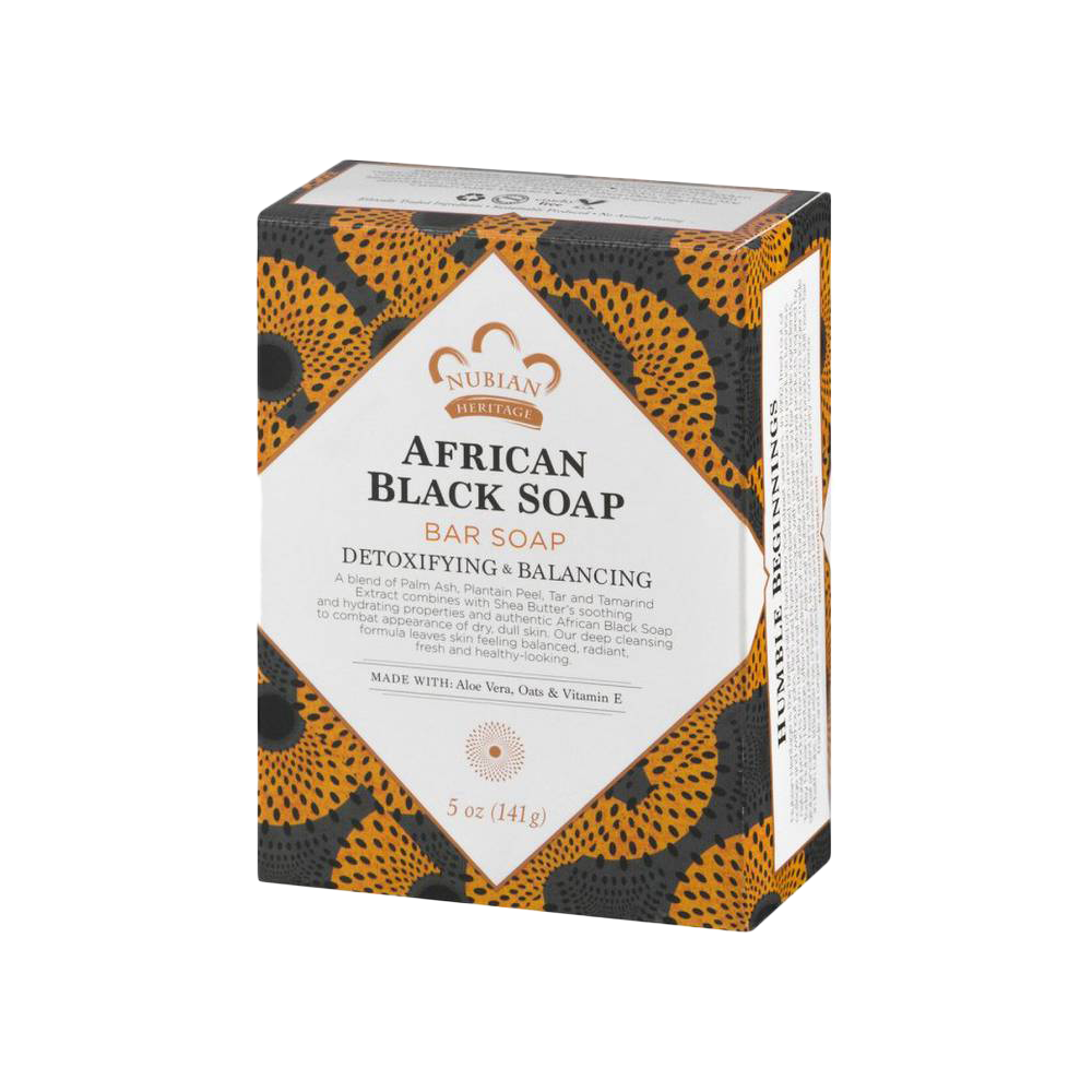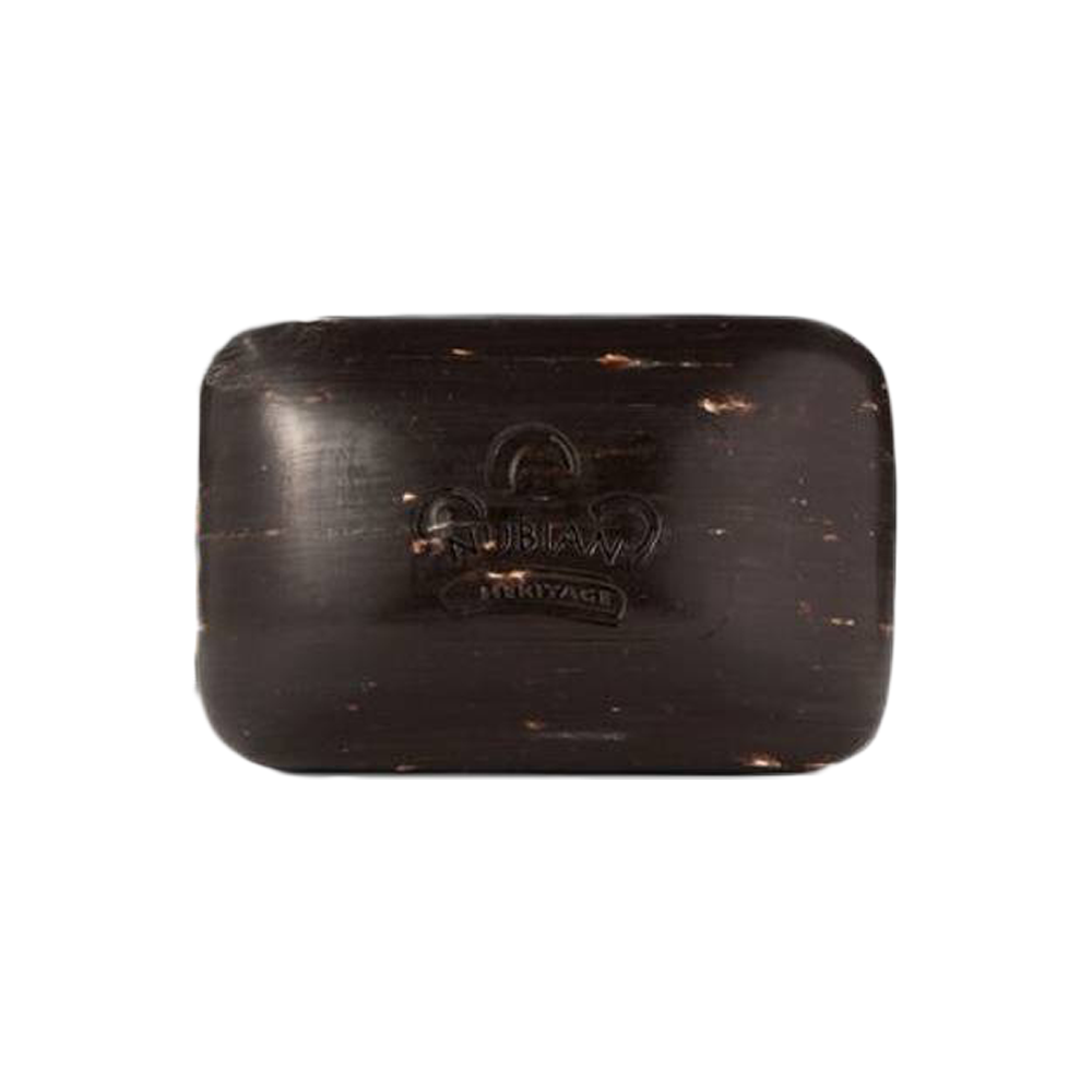 قالب الصابون الافريقى الاسود من نوبيان هيريتاج يجمع بين خصائص الصابون الاسود الافريقى وبين زبدة الشيا المرطبة مع الخصائص المهدئة للشوفان والصبار ورماد الكاكاو لتقليل ظهور عيوب البشرة السطحية.