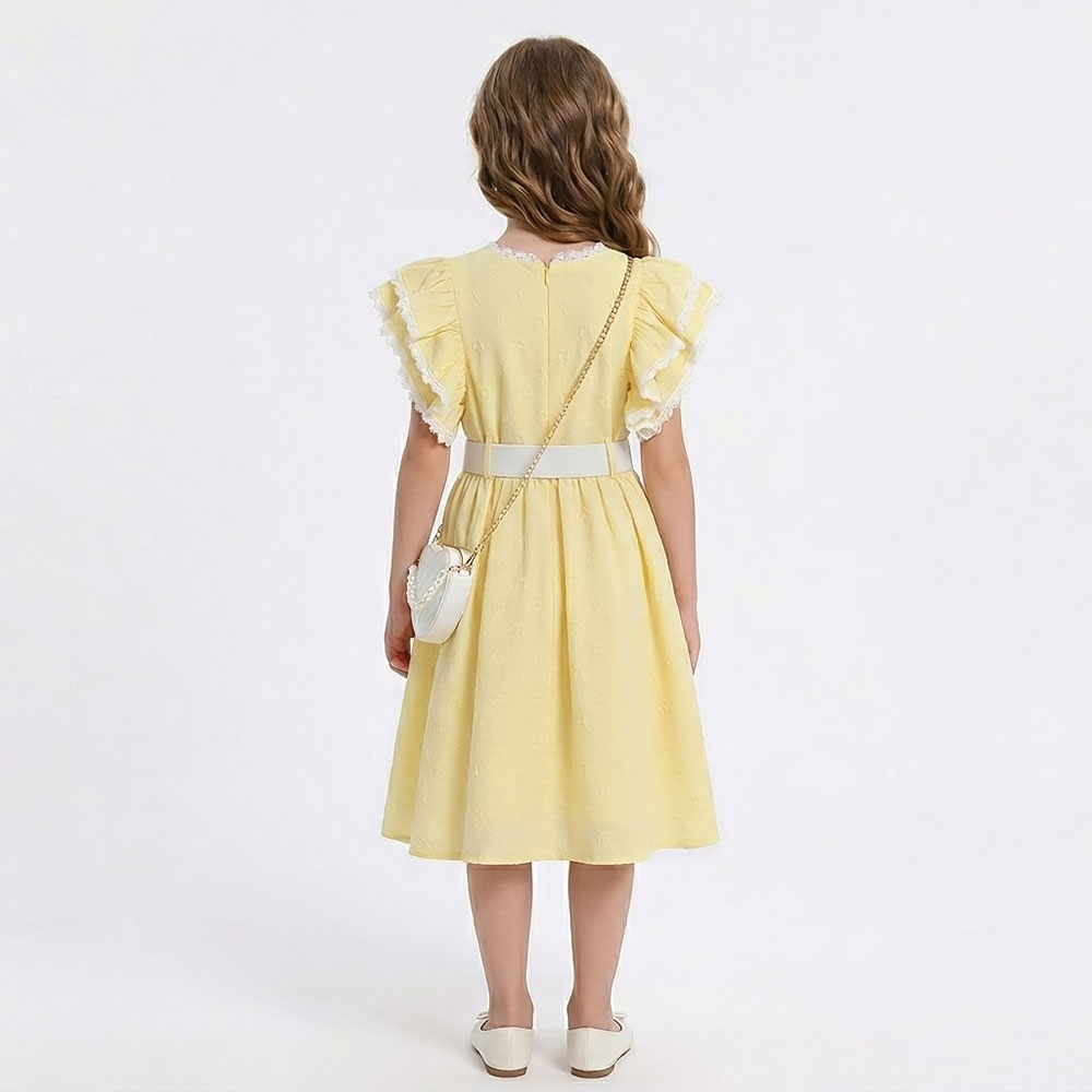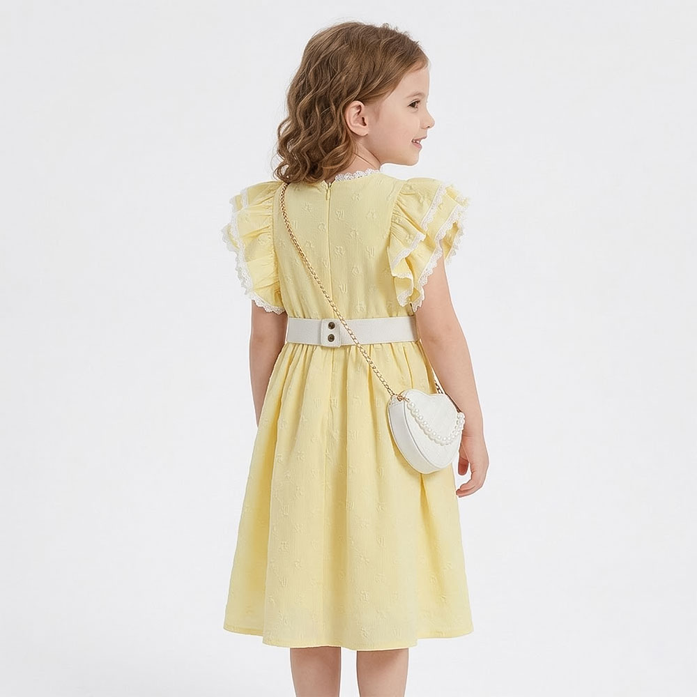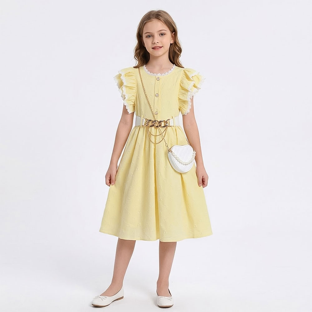 فستان أنيق يجمع بين الألوان الحيوية والتفاصيل الكلاسيكية، يمنح طفلتك إطلالة مشرقة ومفعمة بالأنوثة، مع لمسة فاخرة بفضل الحزام المزخرف والحقيبة العصرية المتناسقة معه