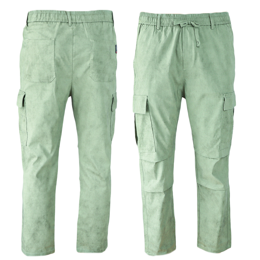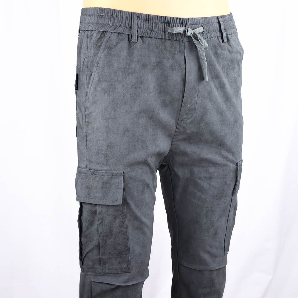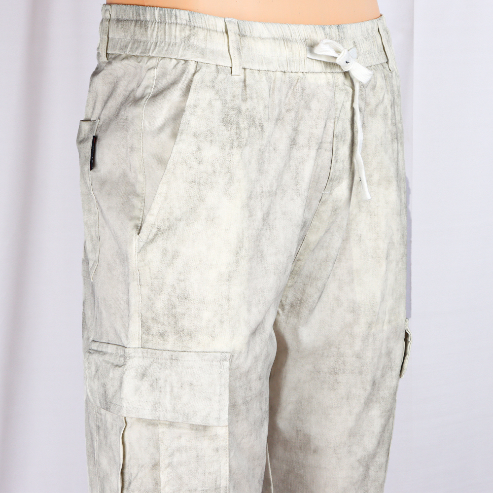 بنطال شبابي بتصميم كاجوال عملي مصنوع من قماش بالونين مخطط خفيف يتميز بخصر مطاطي مع رباط للتعديل وجيوب جانبية و كسرتين في الامام , مناسب للإرتداء اليومي .