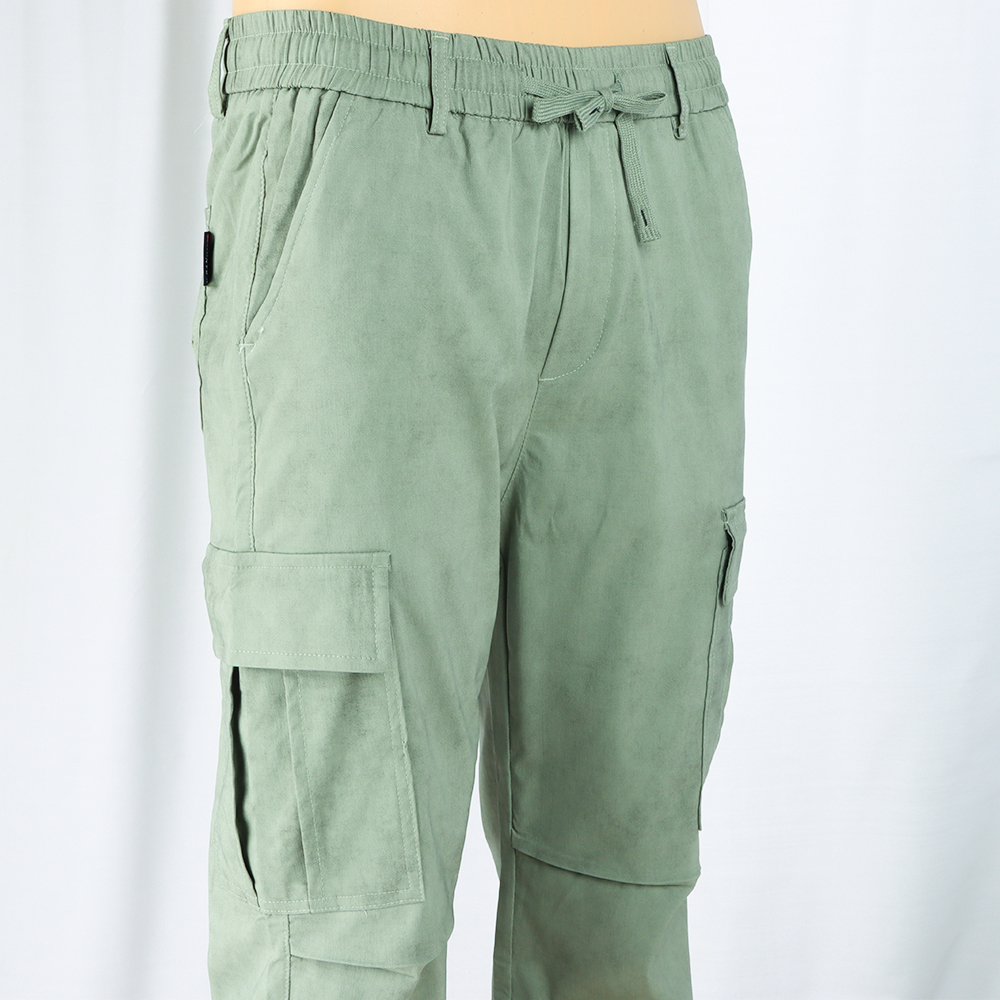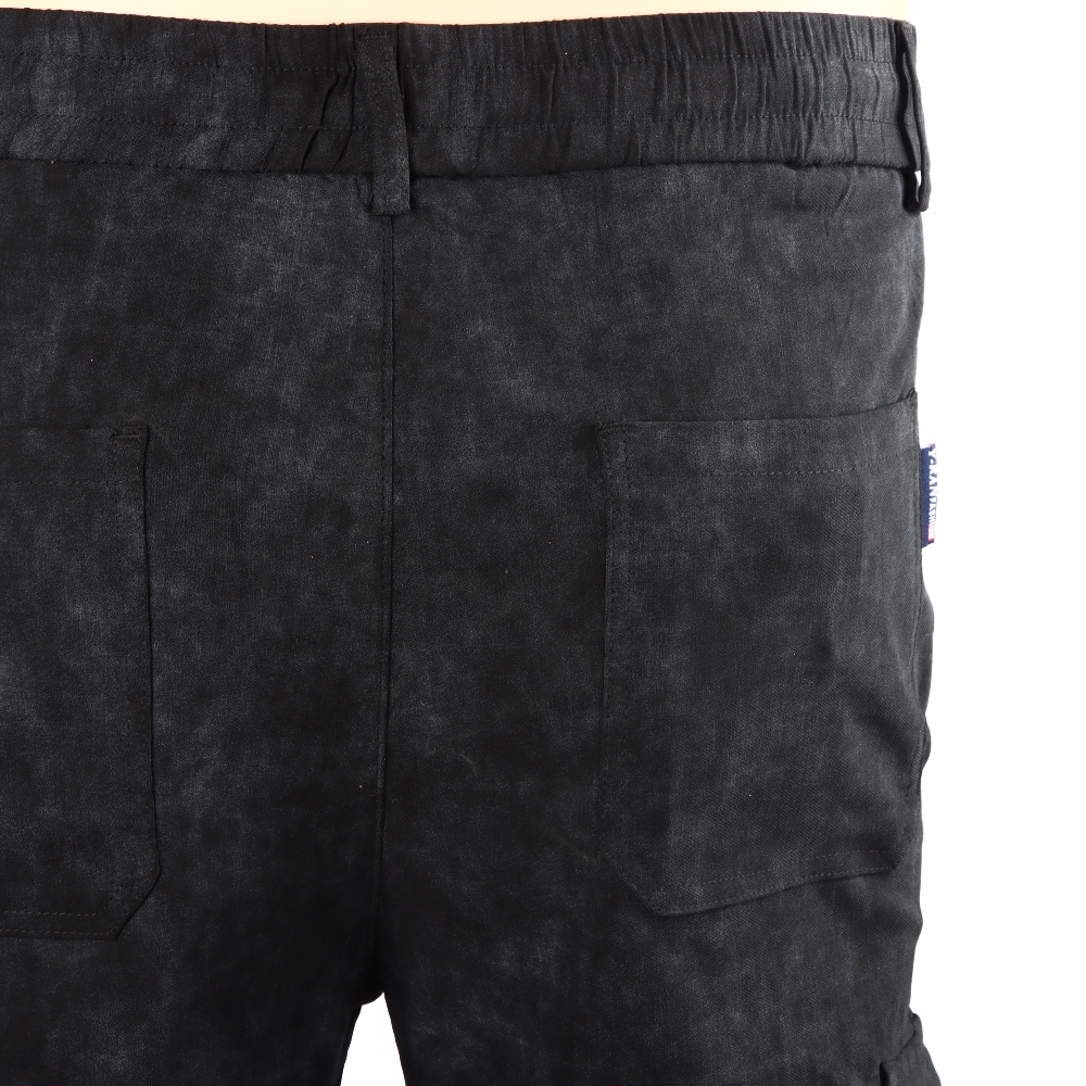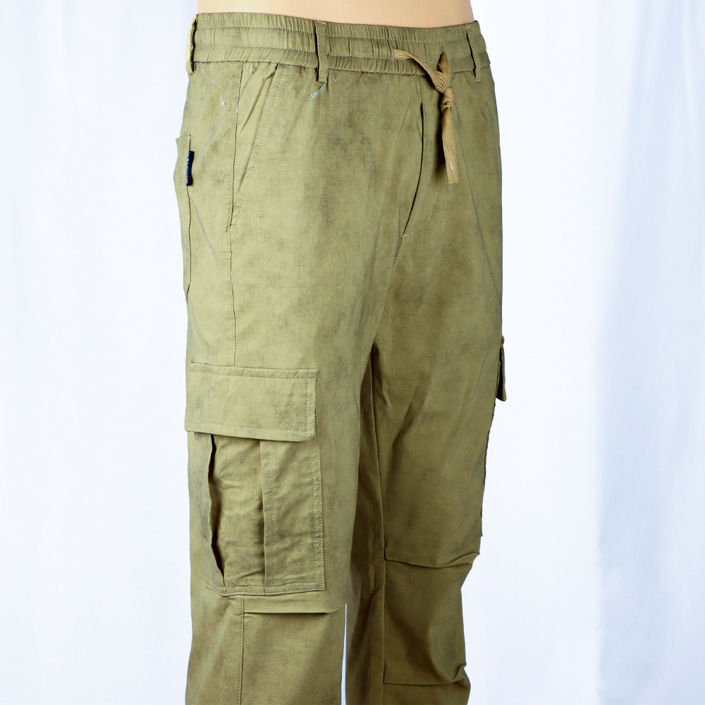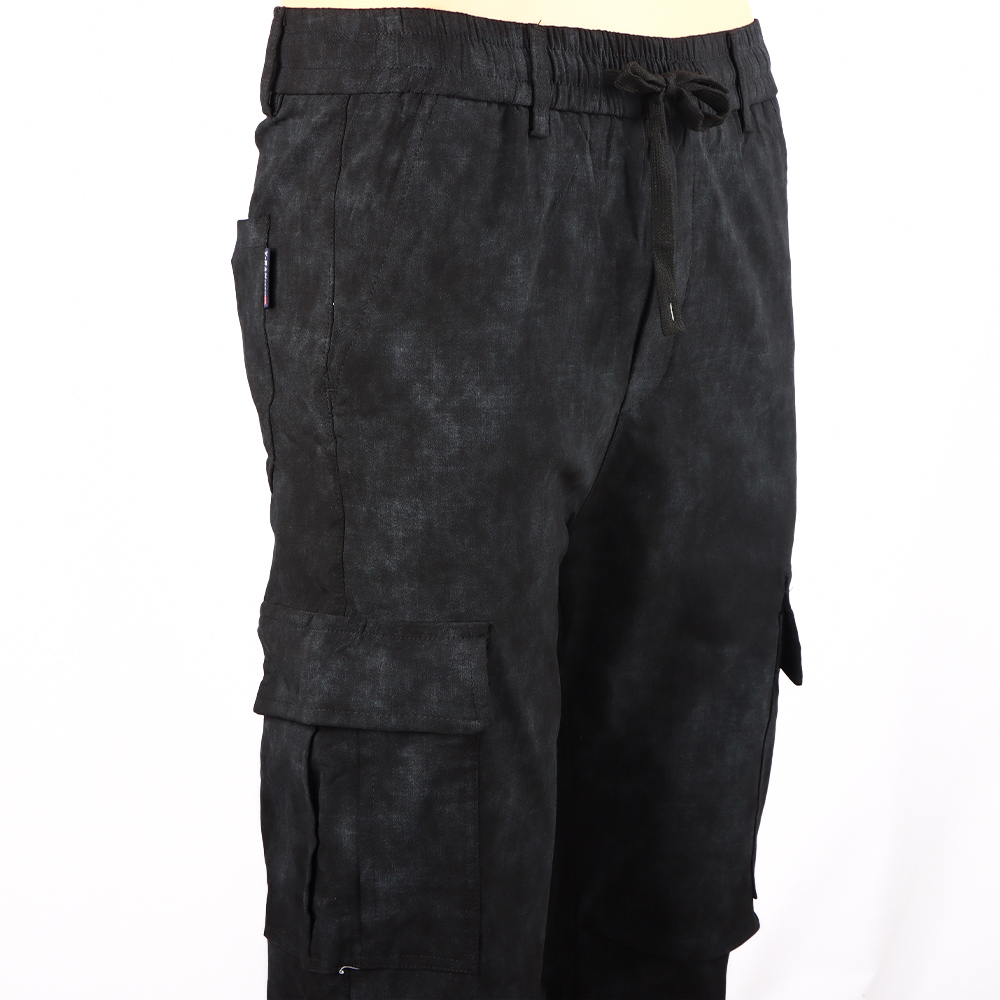 بنطال شبابي بتصميم كاجوال عملي مصنوع من قماش بالونين مخطط خفيف يتميز بخصر مطاطي مع رباط للتعديل وجيوب جانبية و كسرتين في الامام , مناسب للإرتداء اليومي .