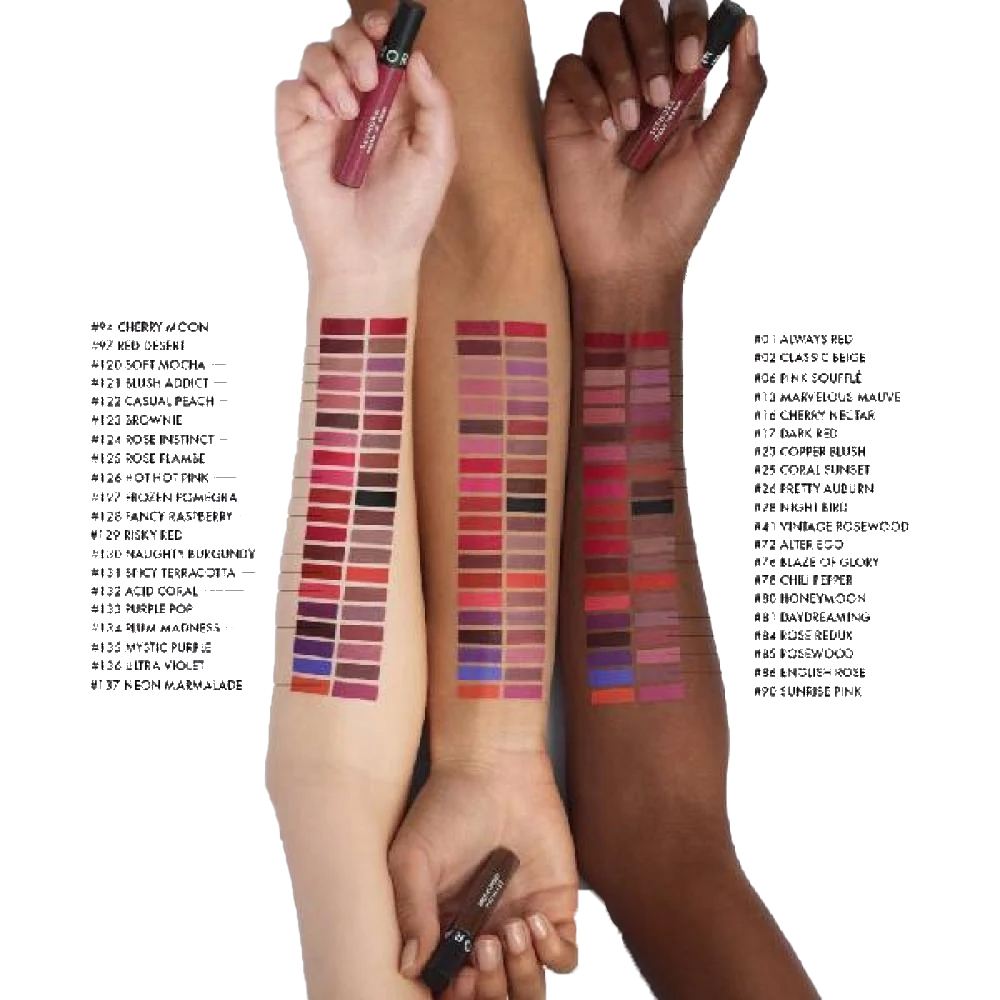 تركيبة سائلة تتحول إلى لمسة نهائية غير لامعة، مما يُعزز من جمال شفاهك.
