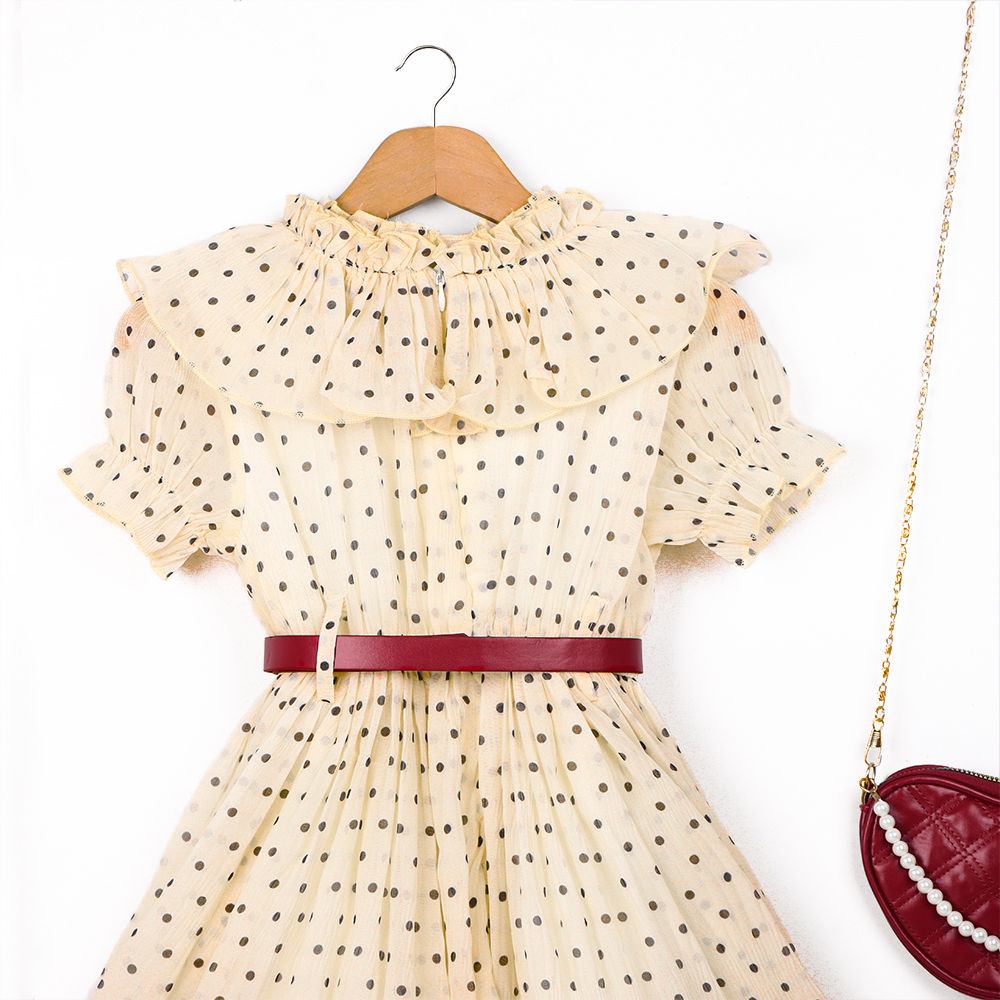 فستان بناتي ناعم بطبعات منقطة وتصميم عصري أنثوي |