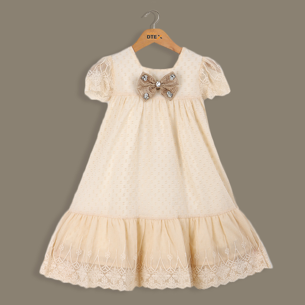 فستان يجمع بين النعومة والرقي يمنح الطفلة إطلالة راقية تشبه الأميرات بفضل تفاصيله الدقيقة وأناقة تصميمه الكلاسيكي