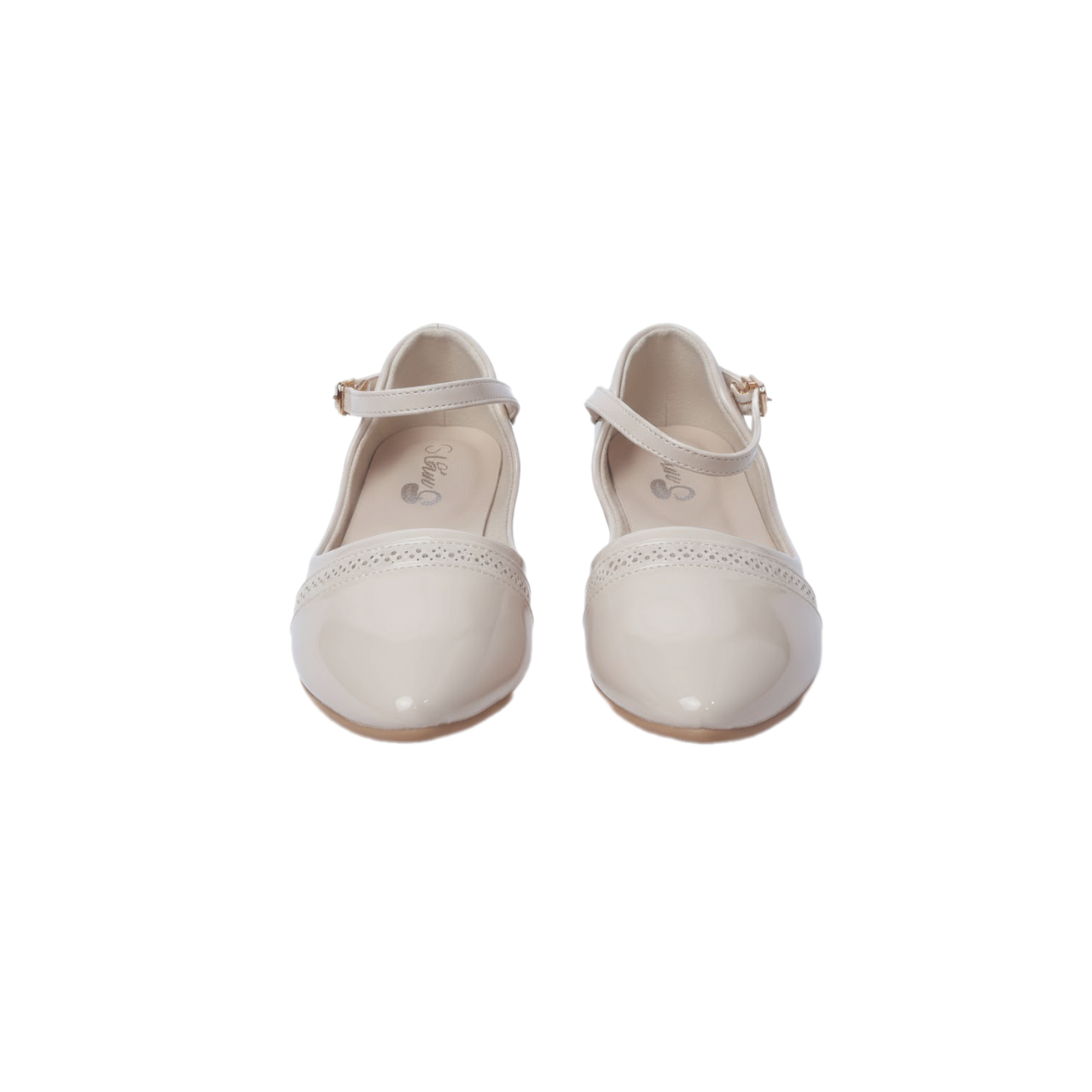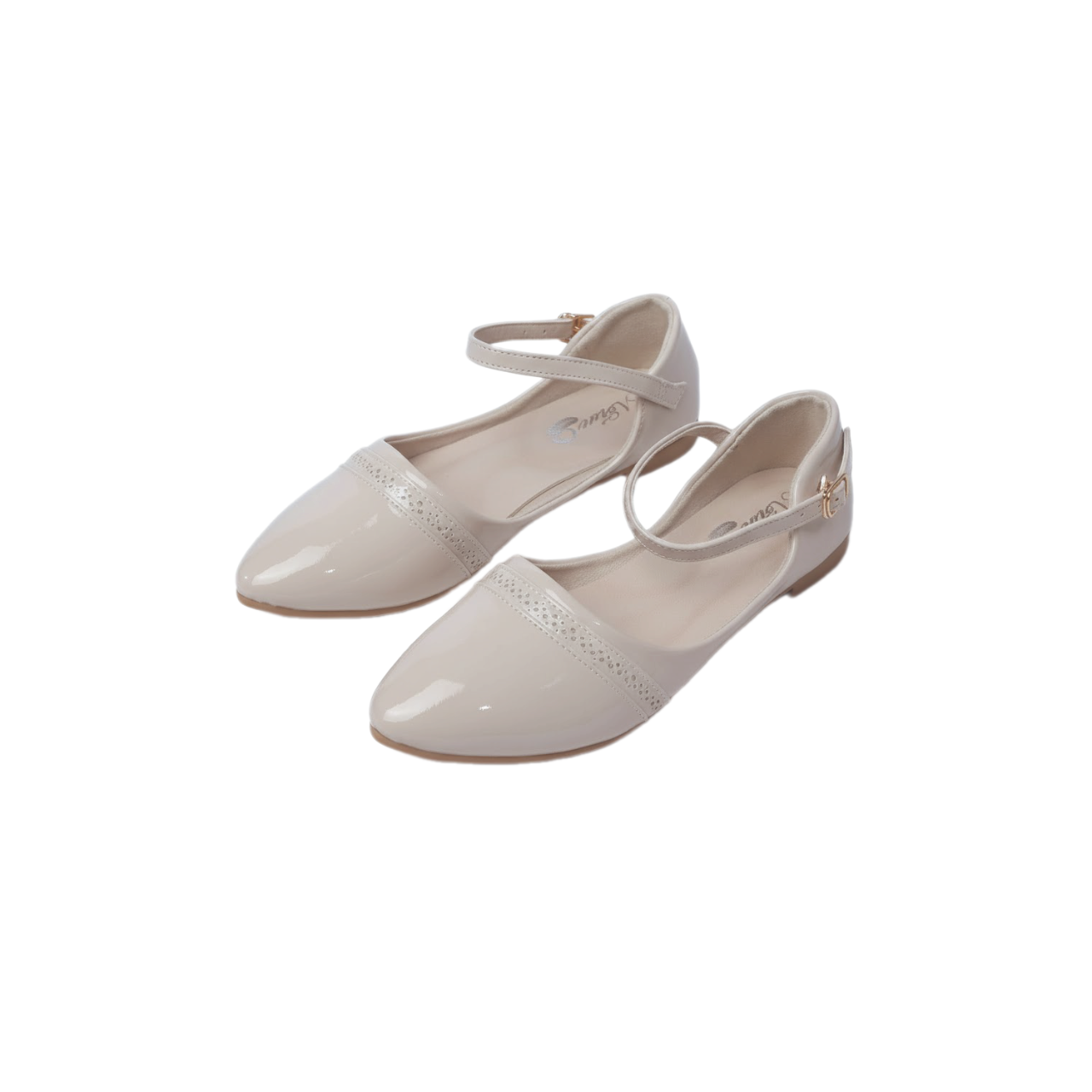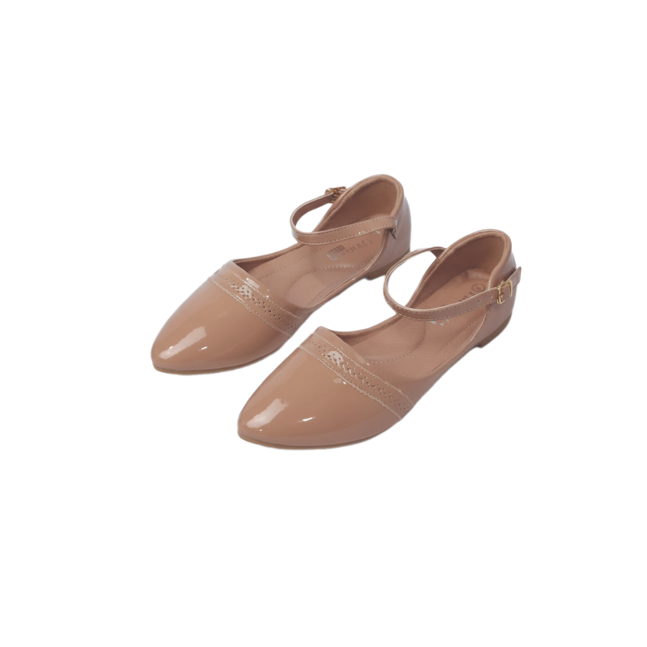 يتميز بتصميم كلاسيكي مع حزام رفيع يلتف حول الكاحل لإضفاء لمسة أنثوية وتوفير ثبات مثالي ويمتاز الحذاء بمقدمة مدببة ومزينة بتفاصيل مخرمة دقيقة تضفي عليه سحرًا خاصًا وهو مثالي للإطلالات اليومية والخاصة التي تتطلب الأناقة والراحة في آن واحد