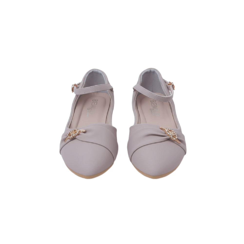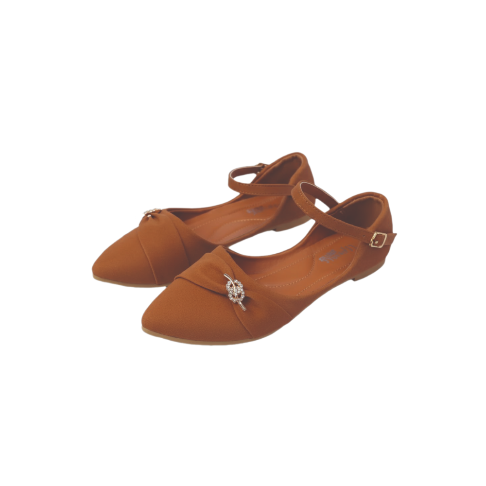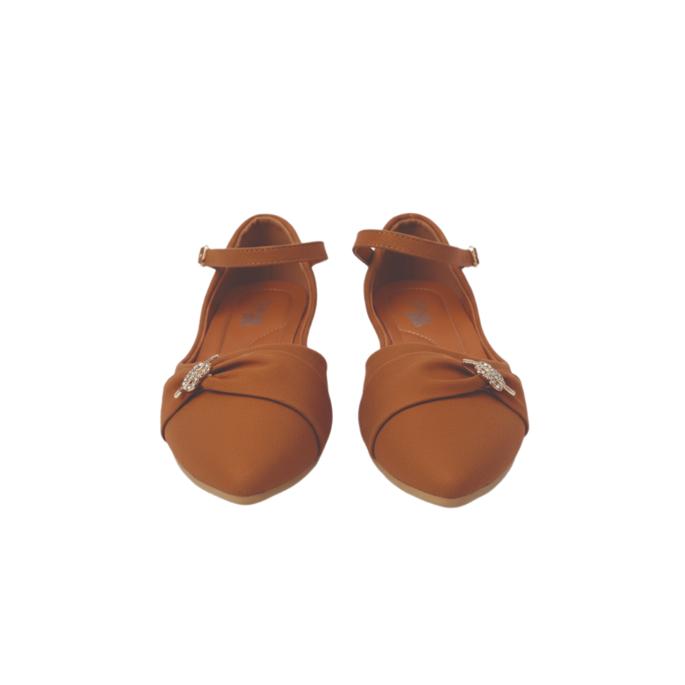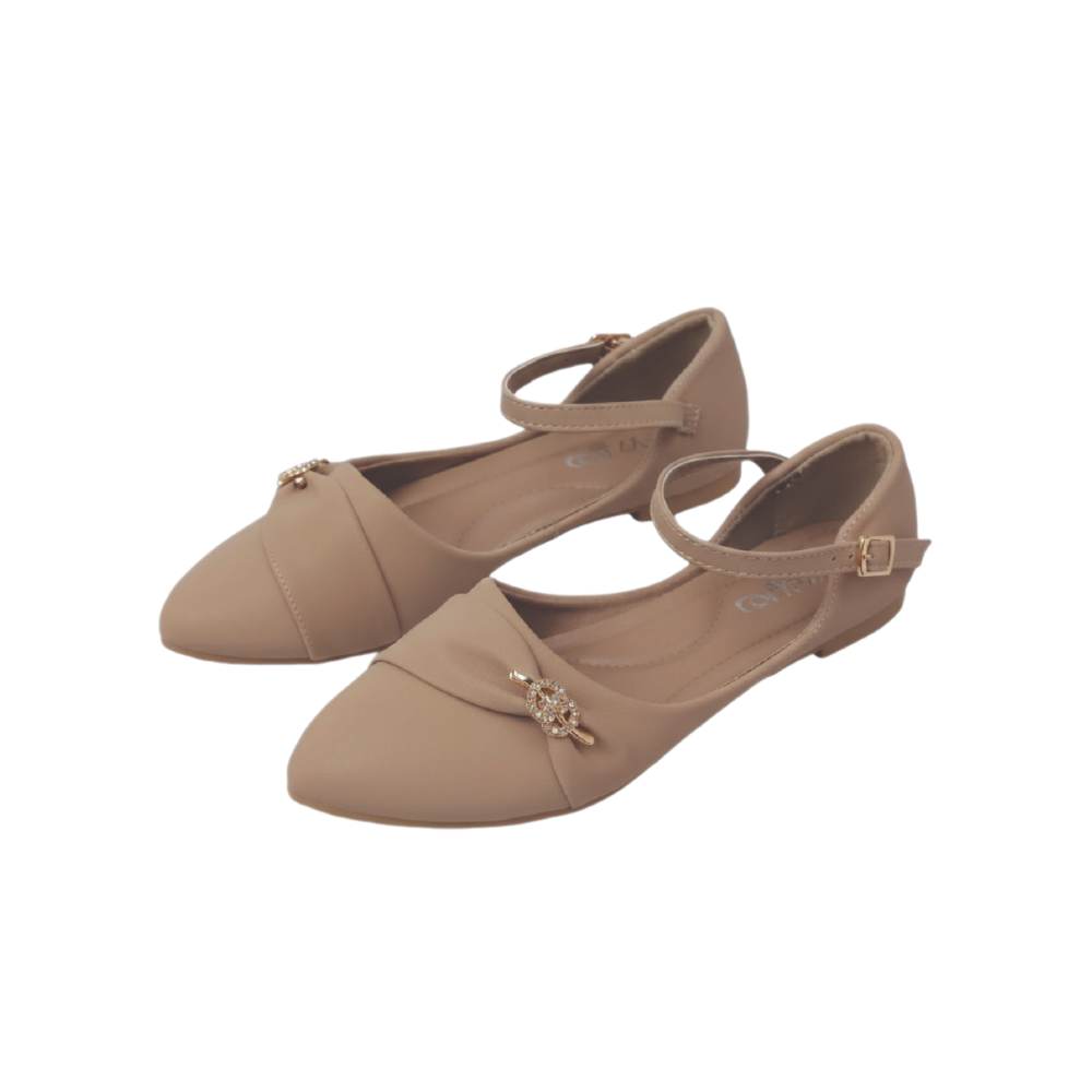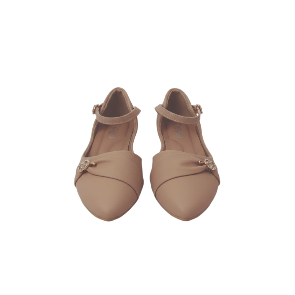 حذاء نسائي مسطح بتصميم كلاسيكي ومريح، يتميز بلمسة نهائية مطفية مثالي لمن تبحث عن حذاء كلاسيكي مريح مع تفاصيل عصرية لافتة للنظر ويتميز بمقدمة مدببة أنيقةوالجزء العلوي من المقدمة مصمم بـ طيات متقاطعة تخلق نسيجًا بصريًا ناعمًا ويتوسط نقطة تقاطع الطيات قطعة معدنية صغيرة مرصعة بالكريستال اللامع، تضفي لمسة من الفخامة والبريق