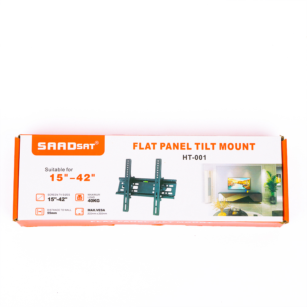 هيكل متين من الفولاذ المدلفن على البارد مع تشطيب بطلاء مسحوق أسود. يتميز بتصميم فائق النحافة يترك مسافة حوالي 50 ملم فقط بين الجزء الخلفي للتلفزيون والجدار. يدعم نطاق إمالة من -5 درجات إلى +15 درجة. يتوافق مع أنماط VESA الشائعة حتى 200x200 ملم لضمان ملاءمة واسعة.