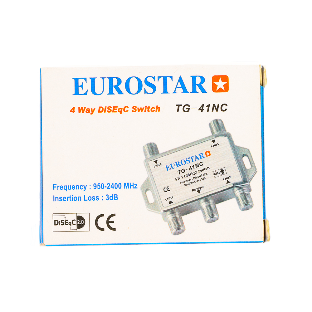 مفتاح DiSEqC V2.0 متوافق أيضًا مع إصدارات 1.0 و 1.1، مغطى بهيكل معدني (زنك مصبوب ومطلي بالنيكل) ومرفق بغلاف بلاستيكي خارجي أنيق ومقاوم للعوامل الجوية. يتميز بتصميم دائرة احترافي وفقدان إشارة منخفض.