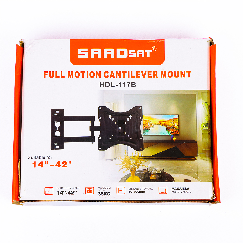 مصنوع من الفولاذ المدلفن على البارد عالي التحمل (SPCC). يتميز بذراع مفصلي واحد أو مزدوج يتيح التمدد من مسافة 55 ملم كحد أدنى إلى 435 ملم كحد أقصى من الجدار. يوفر نطاق إمالة يبلغ ±15 درجة ونطاق دوران (تحريك جانبي) يصل إلى 180 درجة. متوافق مع معايير VESA المختلفة حتى 400x400 ملم.