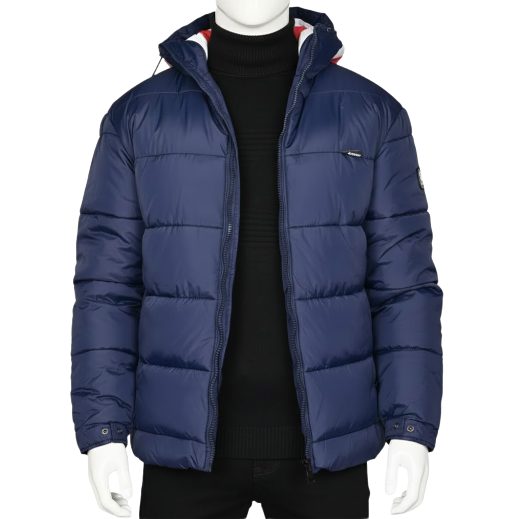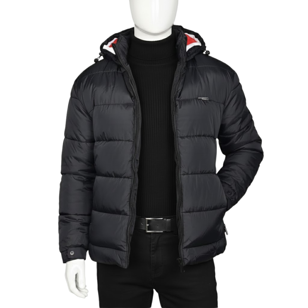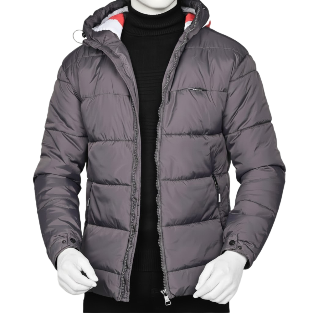 جاكت كلاسيكي للجزء العلوي من الجسم. قطعة ملابس خارجية مصممة لتكون فعالة في الاحتفاظ بالدفء، وتتميز بآلية إغلاق كاملة لتأمين العزل. يوفر المظهر العام شعوراً بالامتلاء والمتانة لمواجهة الظروف المناخية القاسية.
