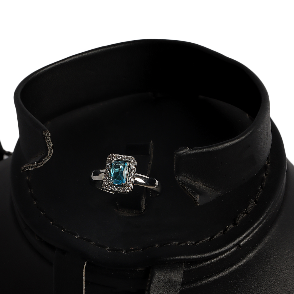 تصميم كلاسيكي عصري يتكون من عقد رفيع، وأقراط متدلية، وسوار أنيق، وخاتم متناسق بنفس الحجر الأزرق اللامع، مع ترصيع كامل بفصوص براقة |