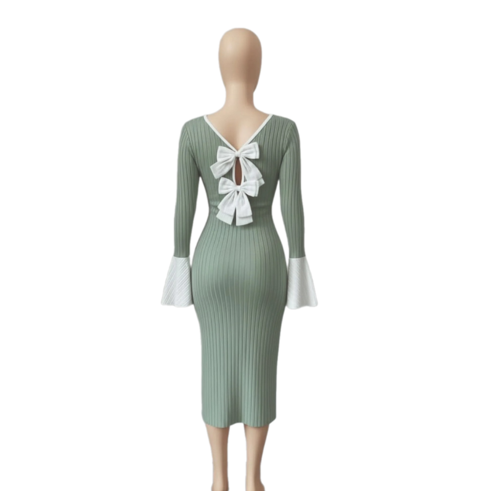 صُمم هذا الفستان بقصة "بادي كون" التي تلتف حول القوام بنعومة فائقة لتبرز جماله، معتمداً على نسيج محبوك مضلع يوفر مرونة وراحة مثالية طوال فترة الارتداء