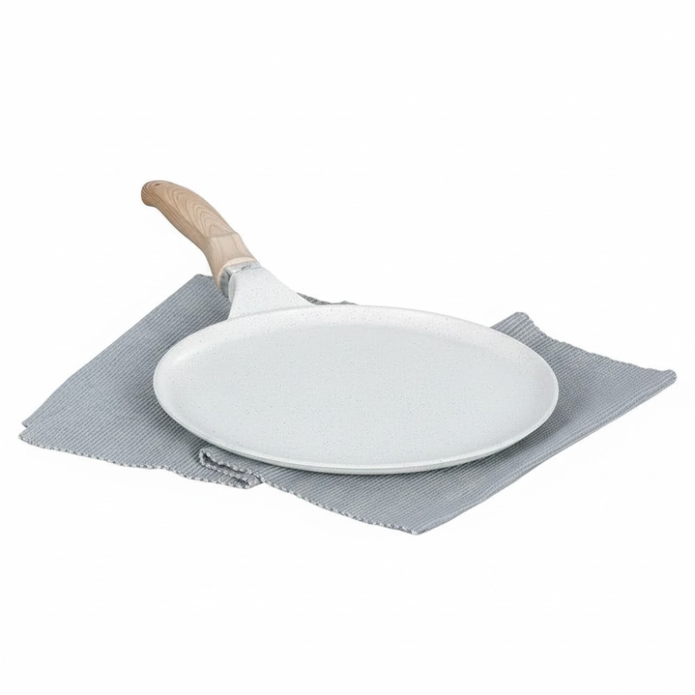 سطح غير لاصق بطلاء الجرانيت، توزيع حراري متساوي، وحواف منخفضة لسهولة قلب الطعام. |