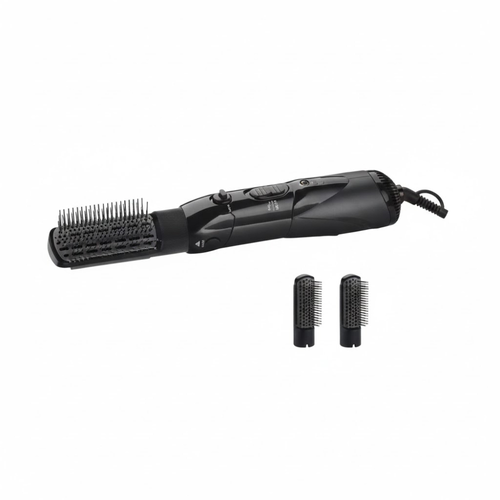 جهاز تصفيف شعر حراري (مشط استشوار) كهربائي متعدد الوظائف. يعمل الجهاز على تجفيف الشعر وتمليسه في خطوة واحدة، حيث يدمج بين تدفق الهواء الساخن وتصميم الفرشاة لتسهيل عملية التصفيف المنزلي