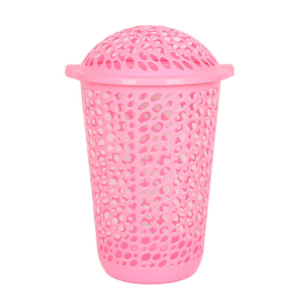 سلة غسيل عملية بتصميم مهوّى وغطاء علوي، مصنوعة من بلاستيك متين وخفيف، تساعد على حفظ الملابس بشكل مرتب ومنع تراكم الروائح