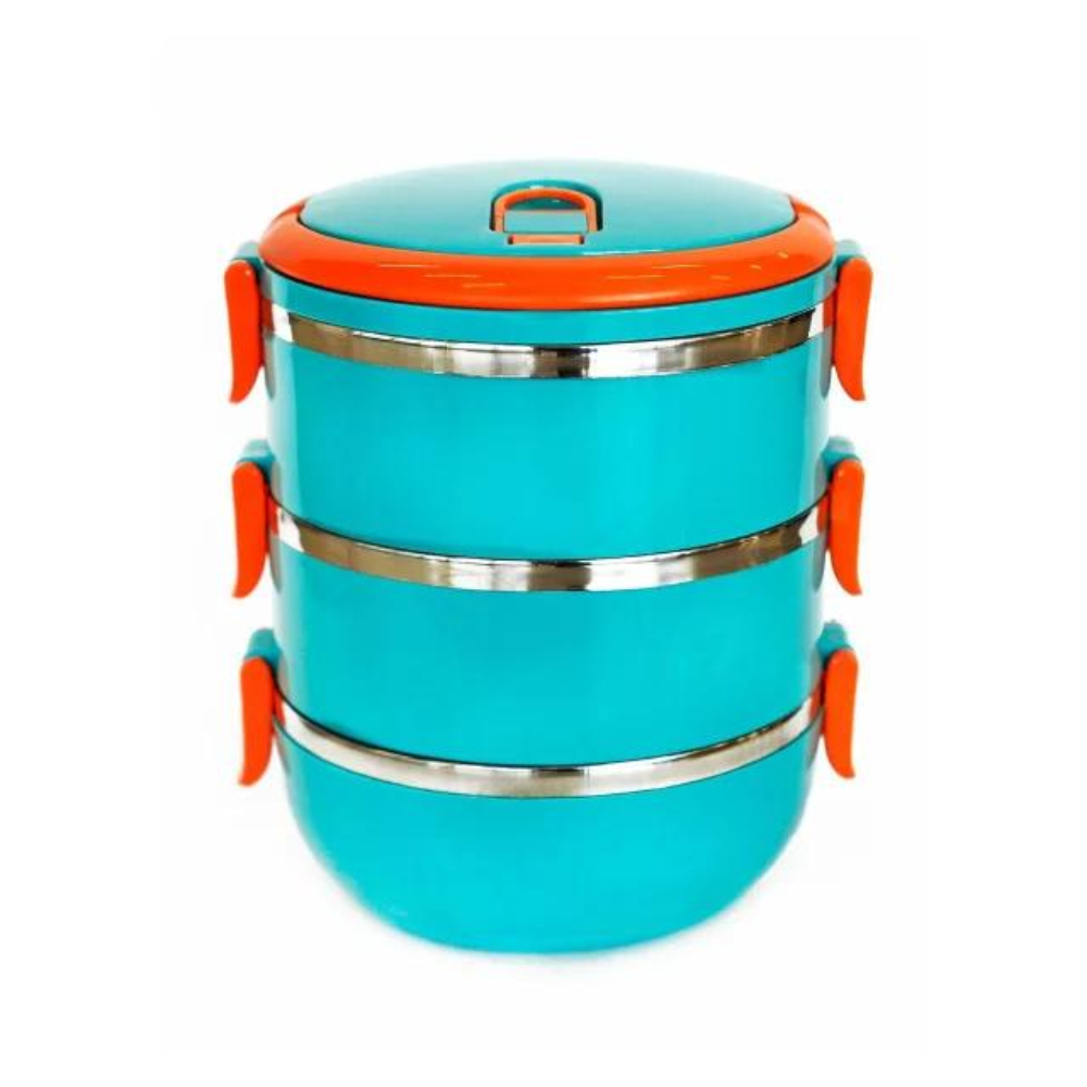 حافظة طعام حرارية، مصممة بنظام الطبقات المتعددة لتنظيم الوجبات وحملها بسهولة. تتميز بشكل أسطواني وألوان زاهية، وهي مخصصة لحفظ الطعام طازجاً أثناء التنقل، سواء للعمل أو المدرسة أو الرحلات.