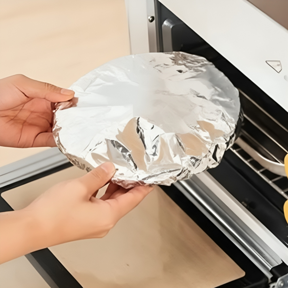 اختر الغطاء المناسب لحجم الطبق ومن ثم قم بتوسيع الجزء المطاطي بيديك وضعه فوق الطبق واتركه ليغلق بإحكام على الحواف |