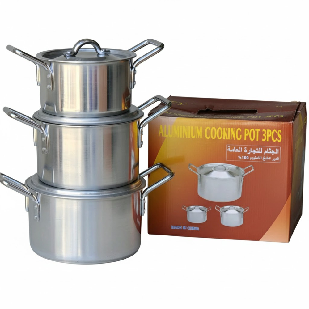 طقم أواني طهي كلاسيكي مكون من 3 قطع بأحجام مختلفة، مصمم لتلبية الاحتياجات اليومية في المطبخ. يتميز بتصميم عملي وبسيط يضمن الكفاءة في الاستخدام وسهولة في التخزين بفضل إمكانية وضع القدور داخل بعضها البعض