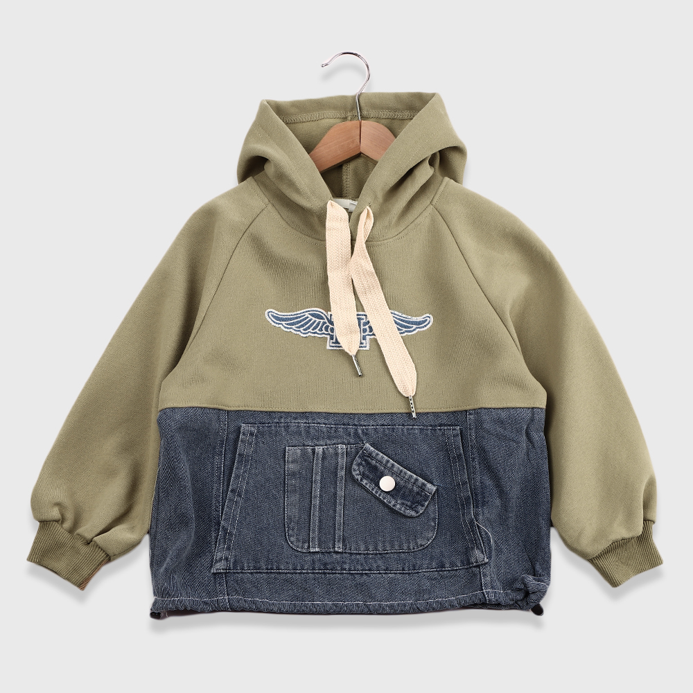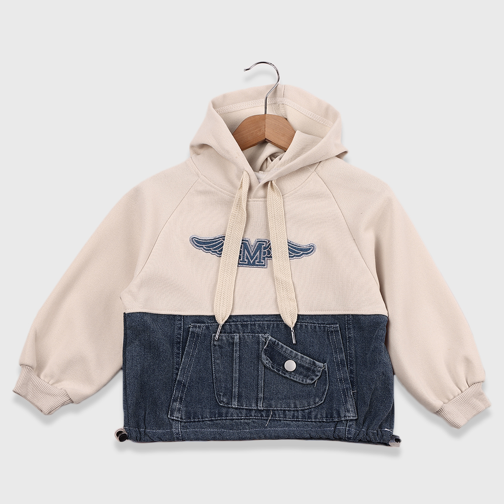 هودي أطفال مميز يجمع بين الطابع الرياضي ولمسة الجينز العصرية في تصميم واحد أنيق.
