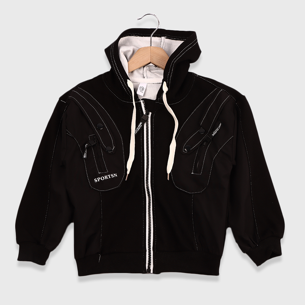 جاكيت أطفال بتصميم رياضي عصري يجمع بين الأناقة والعملية، مزود بسحاب أمامي لسهولة الارتداء وخلع القطعة