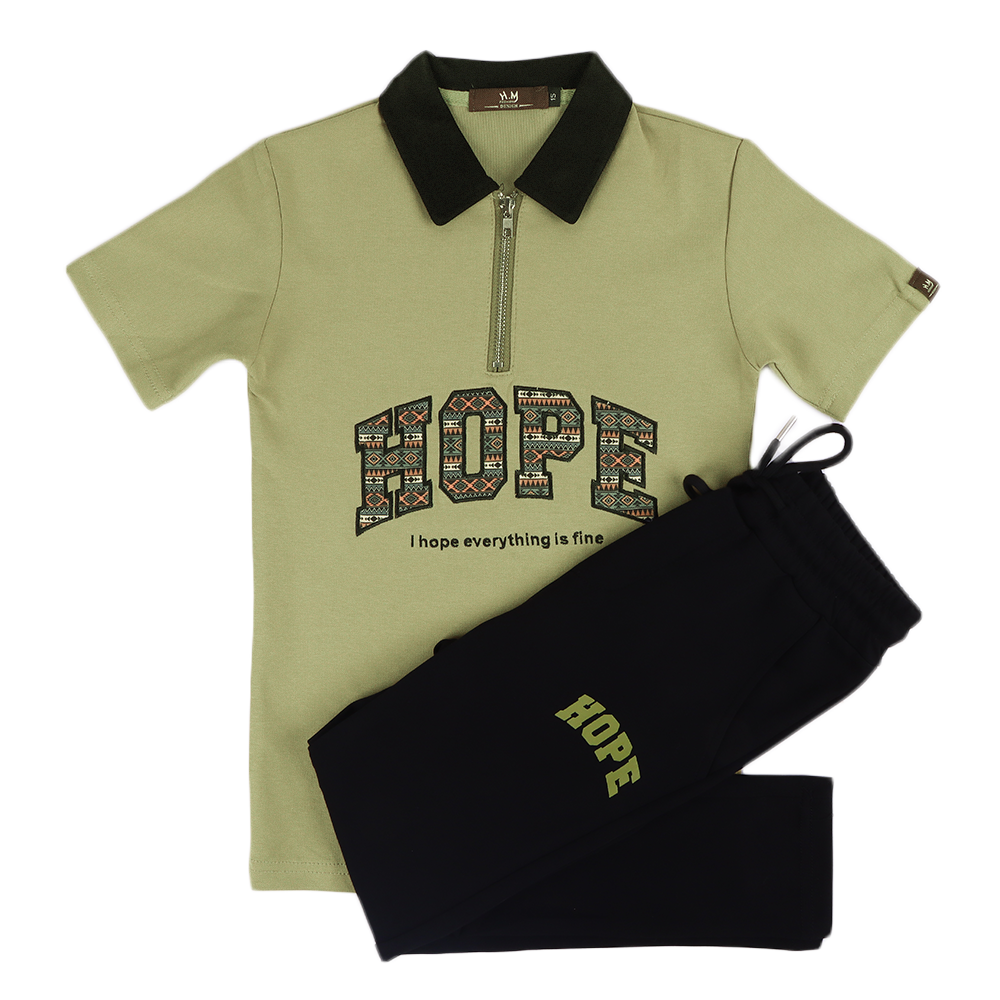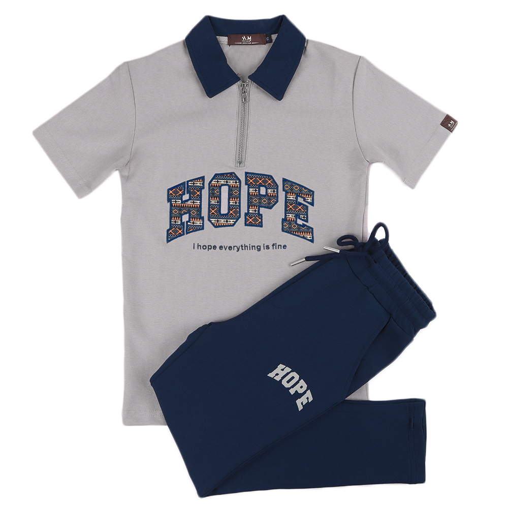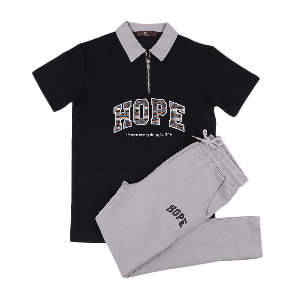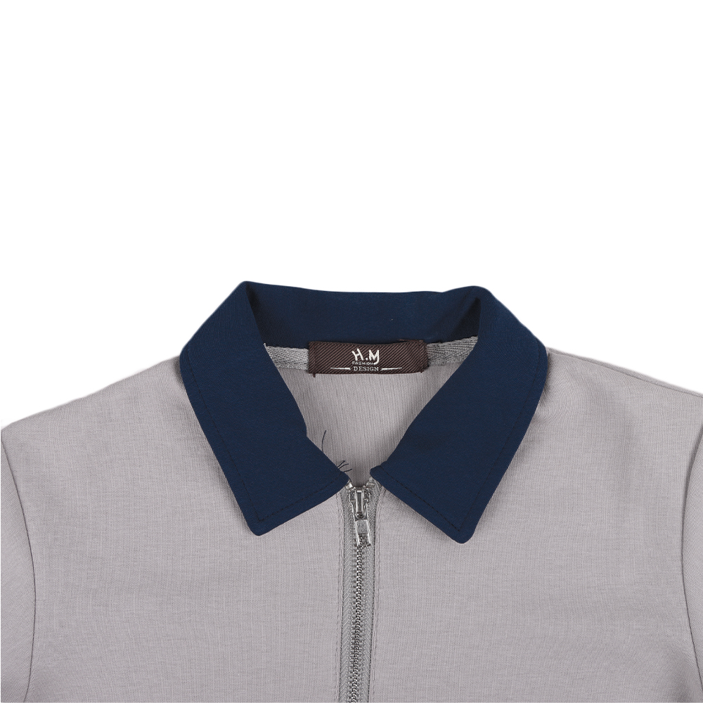 طقم كاجوال مكون من تيشرت و سروال التيشرت بياقة وسحاب امامي مع تصميم بارز في المنتصف والشورت برباط وجيوب .الطقم مريح وعصري مناسب للارتداء اليومي أو الخروج الخفيف.