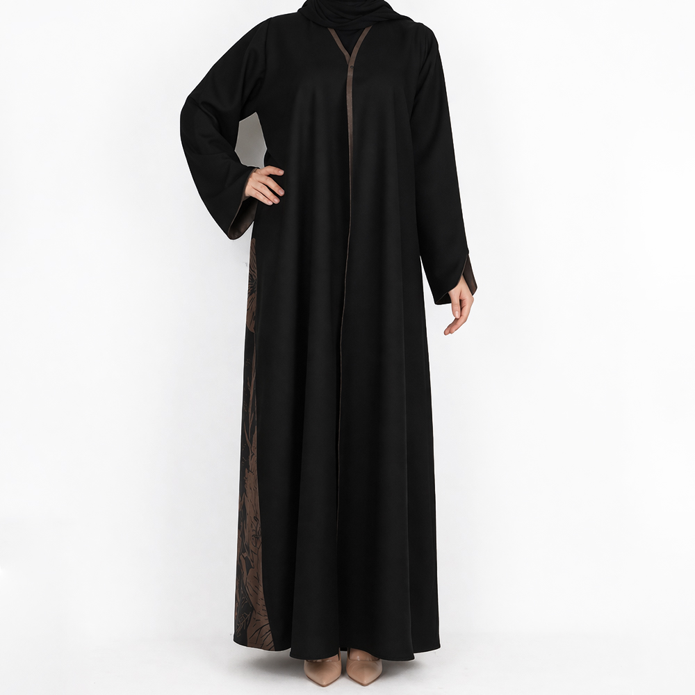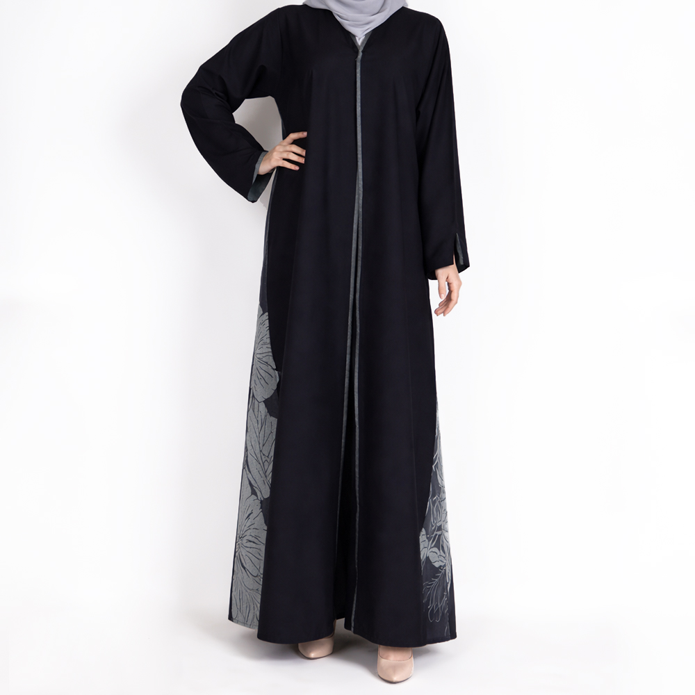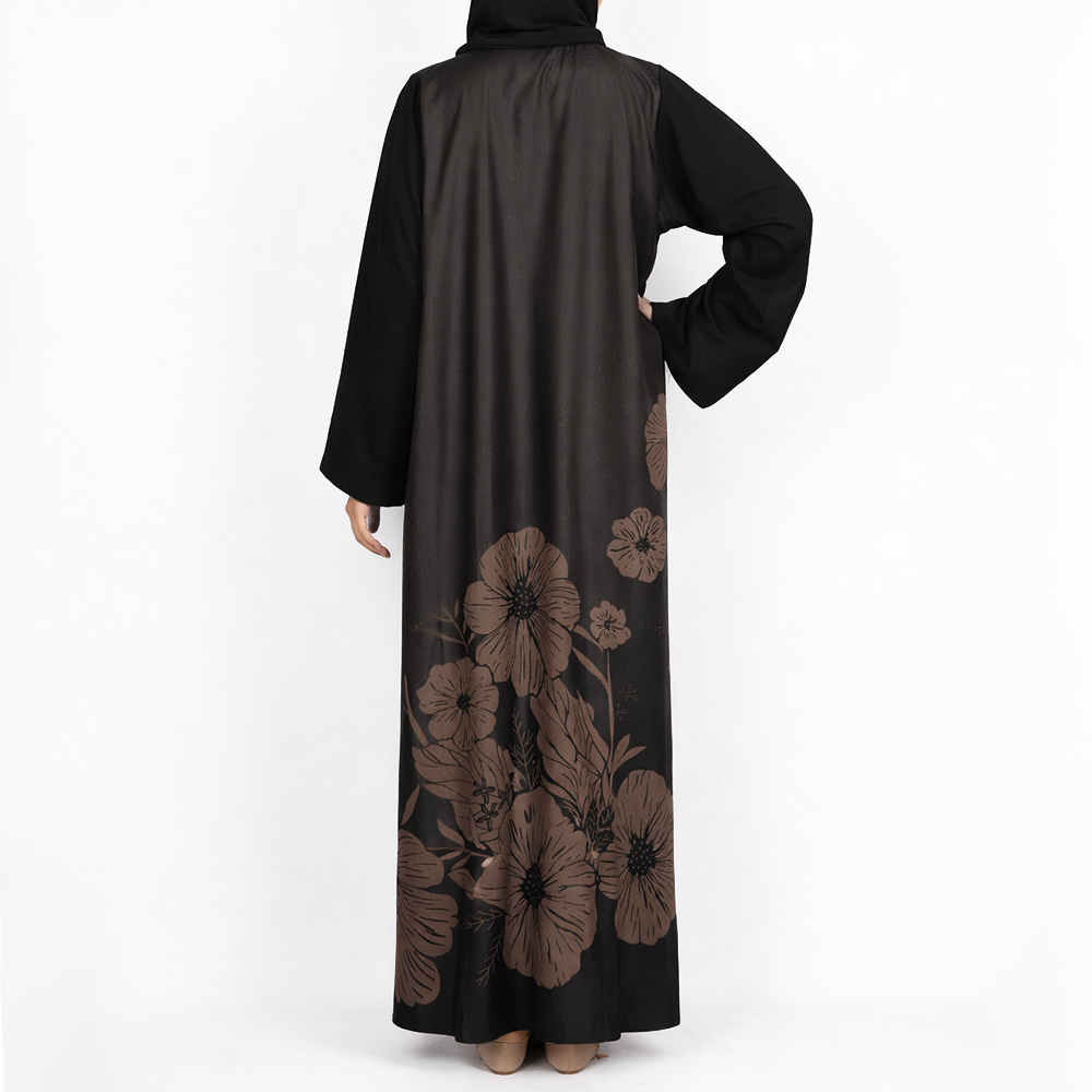 عباية طويلة بقصة واسعة مع نقشة زهور خلفية |