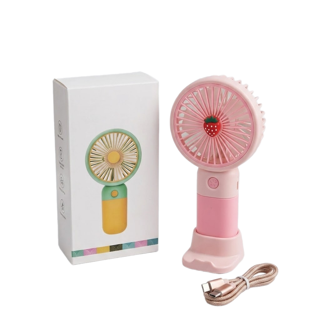 مروحة محمولة أنيقة، خفيفة الوزن، وهادئة؛ تأتي مع قاعدة مكتب وكابل شحن لتمنحكِ انتعاشاً عملياً في كل مكان.
