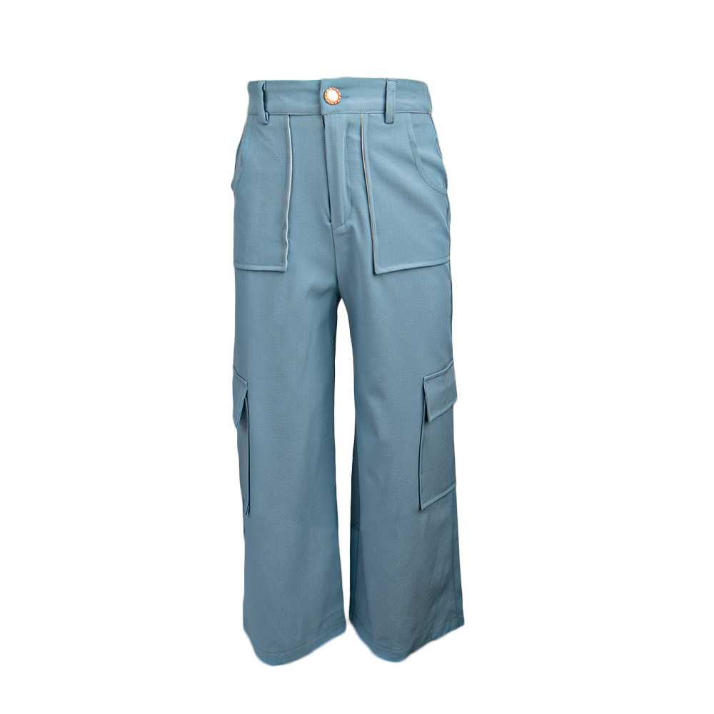 طقم بناتي مكون من بلوزة بكسرات على الأكتاف و بنطلون بقصة واسعة و جيوب من الجانبين