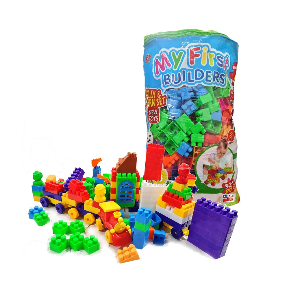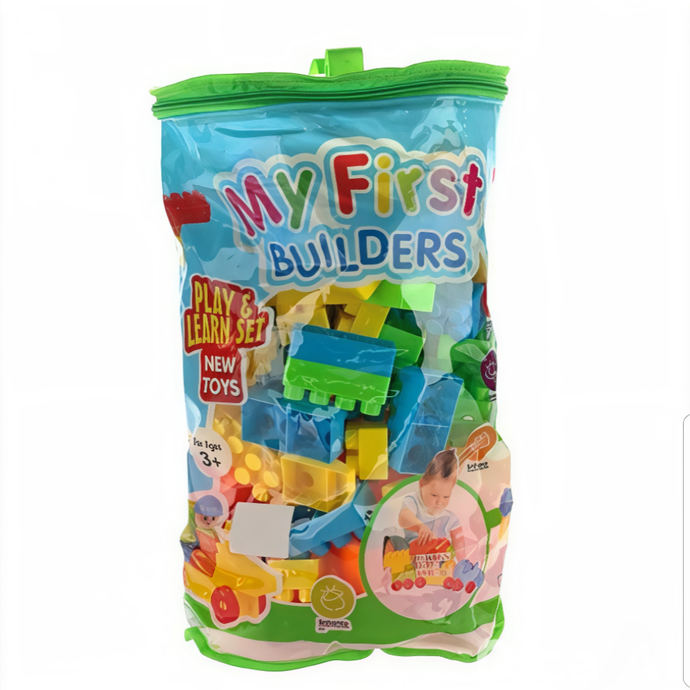 مجموعة مكعبات تحتوي على قطع ملونة ومتنوعة مصممة لمساعدة الاطفال على التعلم من خلال اللعب