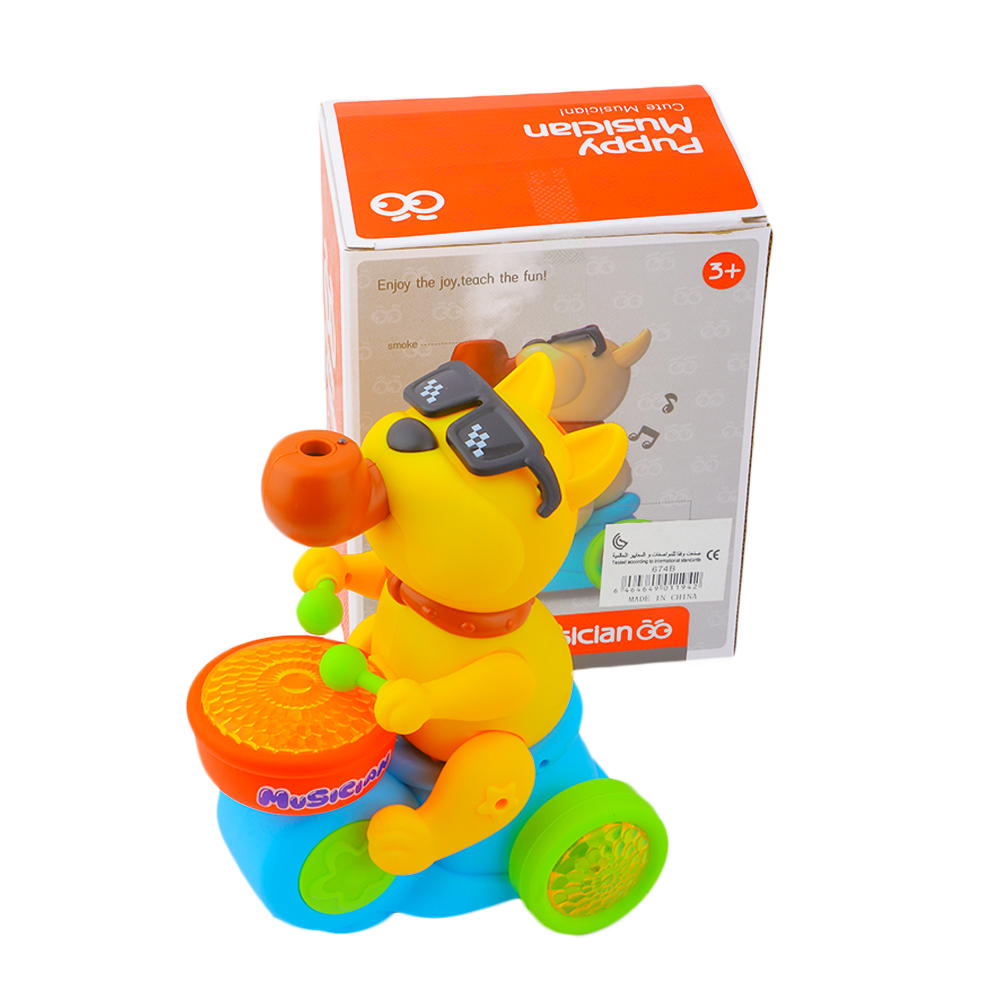 لعبة ترفيهية على شكل كلب لطيف يرتدي نظارات شمسية ويعزف على الطبول بطريقة ممتعة. تتميز بألوان زاهية تجذب الأطفال وتصدر أصواتًا موسيقية تضيف جوًا من المرح والبهجة. تساعد الأطفال على تنمية حواسهم السمعية والبصرية وتشجعهم على التفاعل مع الموسيقى