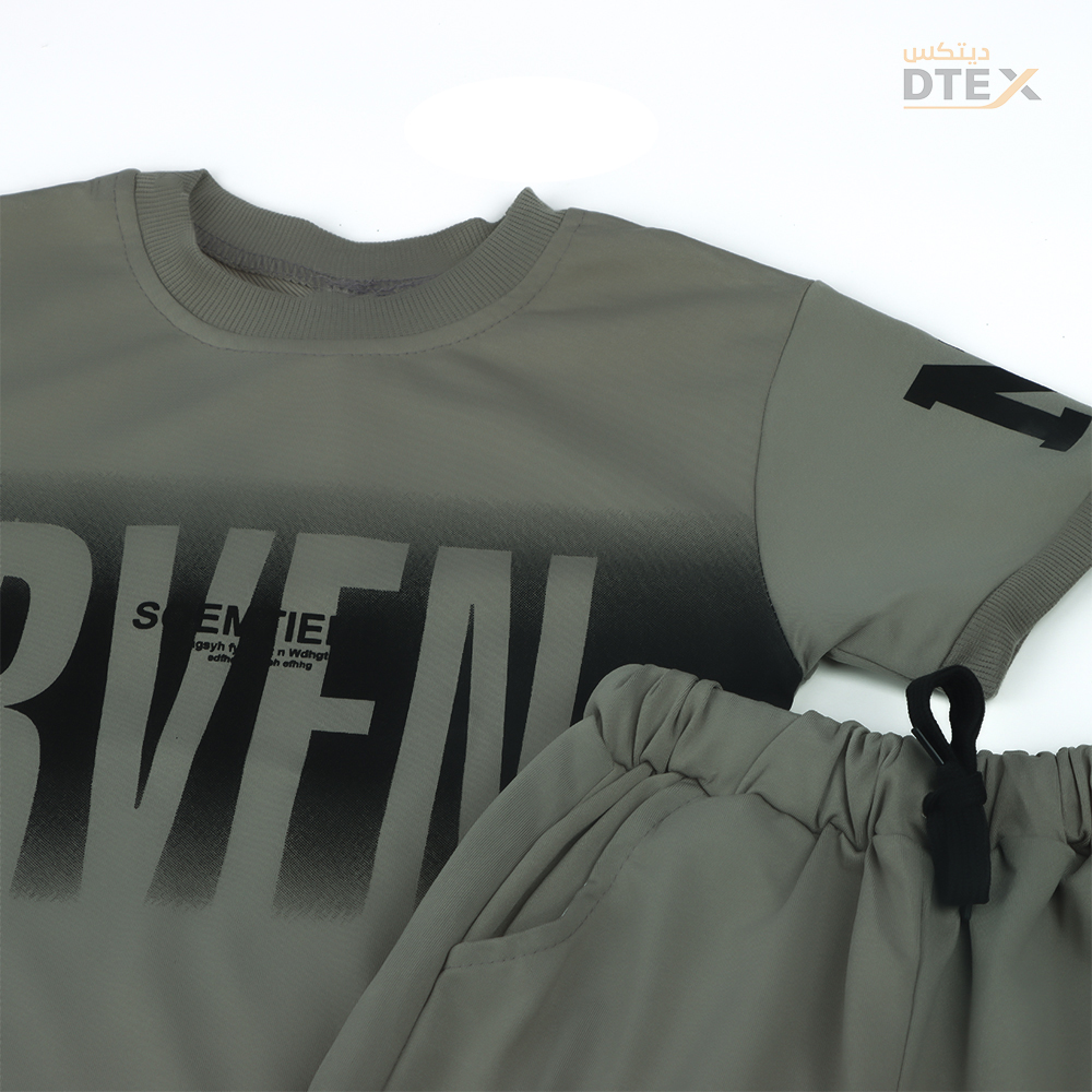 طقم كاجوال أنيق مكون من تيشيرت بتصميم عصري مطبوع على الصدر، مع شورت قصير عملي مزود بجيوب لراحة أكبر