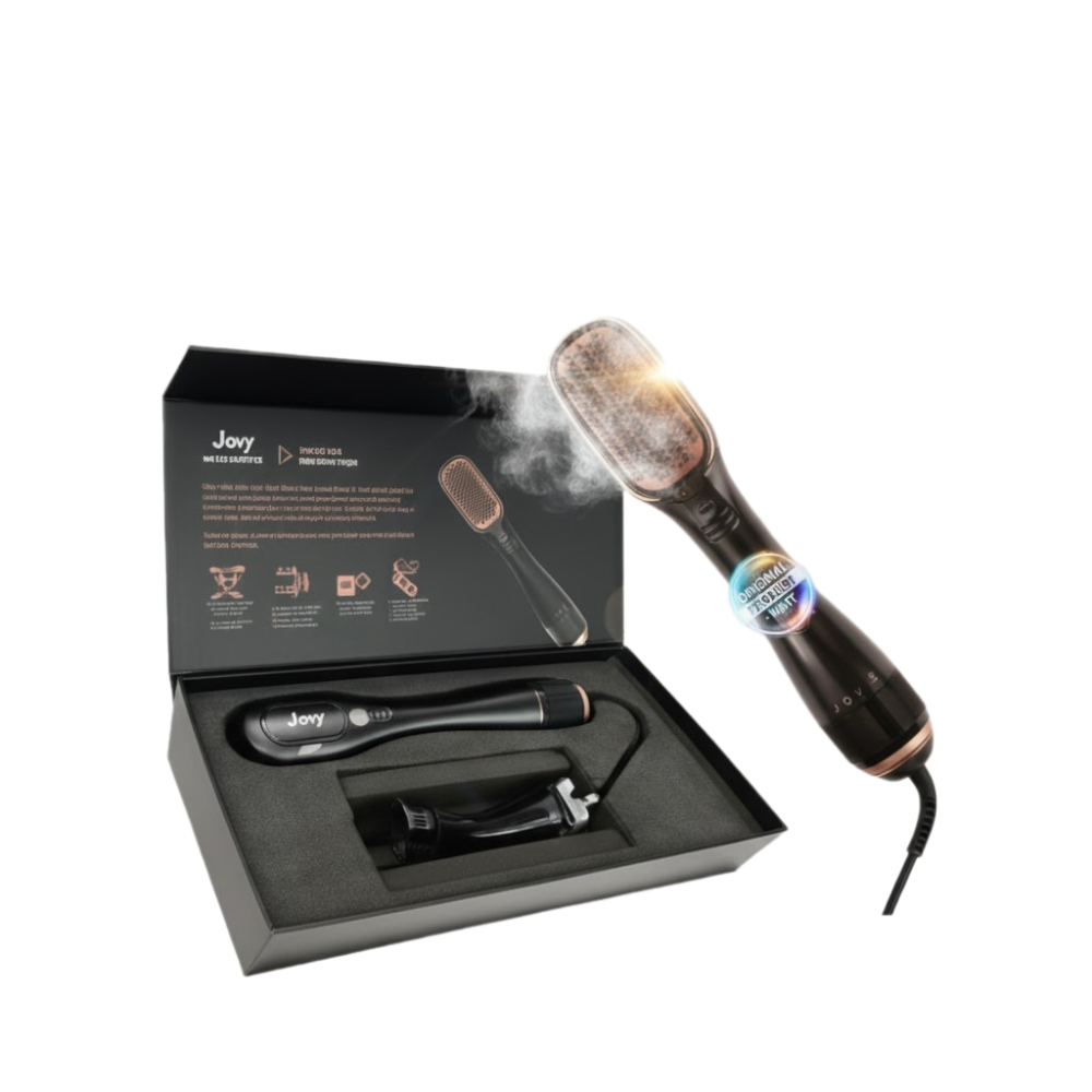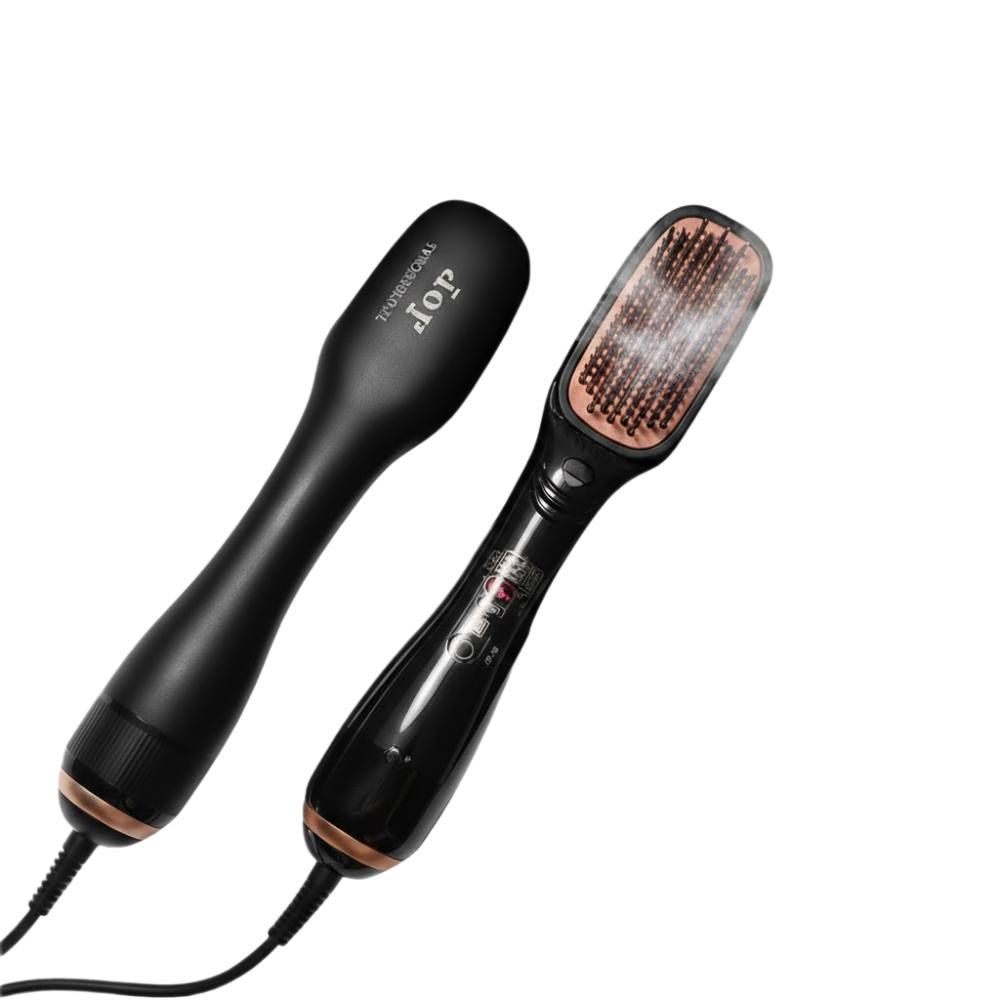 فرشاة تصفيف وتجفيف الشعر في نفس الوقت، مما يوفر الوقت والجهد م و يجتوي على فرشاة منفصلة ثم مكواة تمليس تساعد الشعيرات المختلطة والحرارة الموزعة على فرد خصلات الشعر وتنعيمها، مما يقلل من التجعد ويمنح الشعر مظهرًا لامعًا وصحيًا وتحتوي على شاشة يتيح للمستخدم اختيار درجة الحرارة المناسبة لنوع الشعر (منخفضة للشعر الرقيق أو التالف، وعالية للشعر الكثيف أو المجعد)، مما يوفر حماية أكبر للشعر