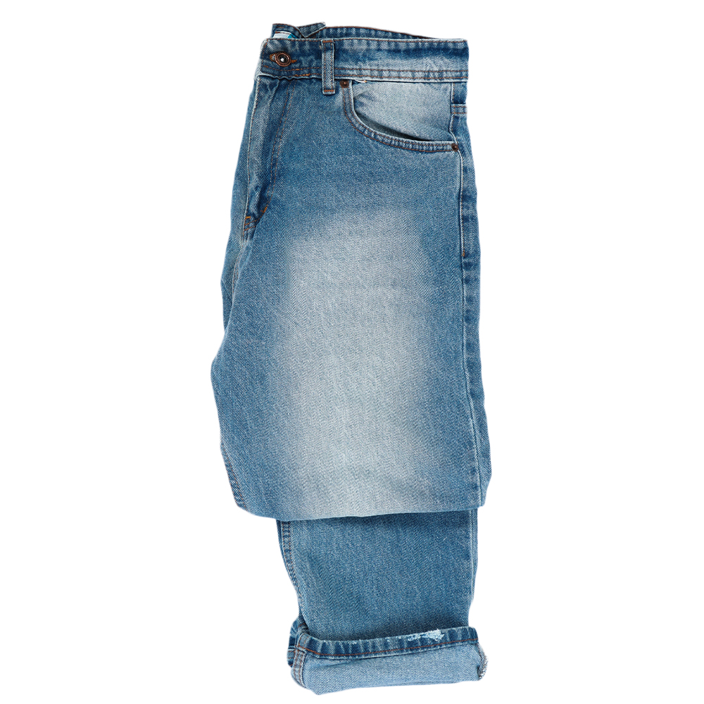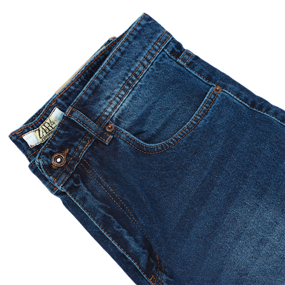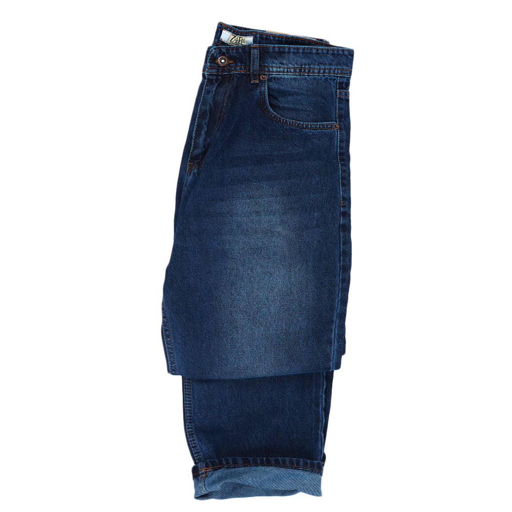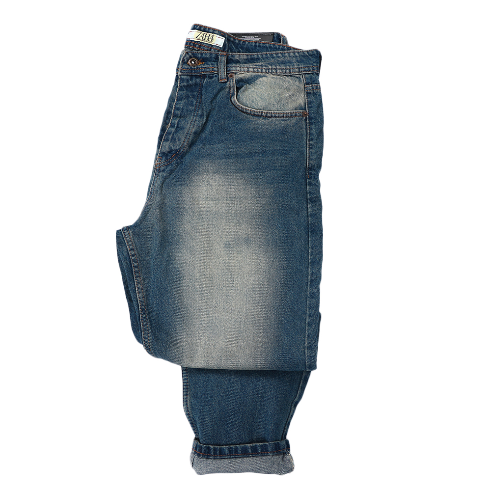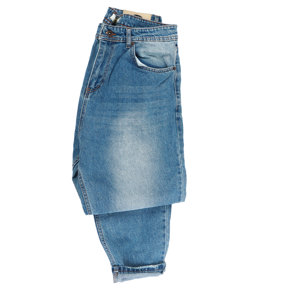 بنطال جينز بتدرجات غامقة وفاتحة، مصنوع من قماش دنيم متين ومريح، يتميز بتصميم عصري ضيق عند الأسفل يناسب الإطلالات اليومية الكاجوال.