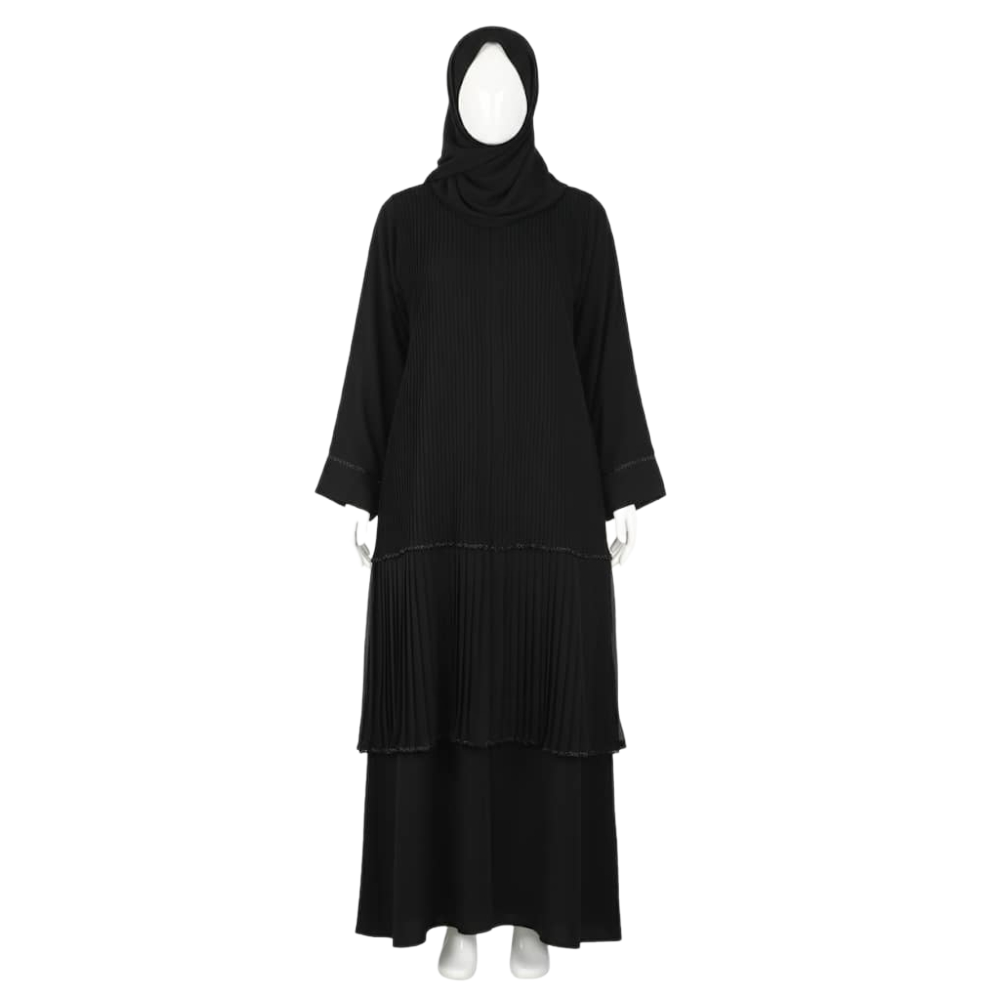 تألقي بسحر الاناقة واخطفي الأنظار . اكتشفي قمة الفخامة والرقي مع العباية السوداء المميزة .القطعة الفنية التي تعكس شخصيتك الفريدة .صممت لتمنحك اطلالة عصرية ومحتشمة .حيث تلتقي فخامة القماش الأسود بجمال الكسرات الانسيابية التي تضفي حيوية وسحرا خاصا على كل حركة