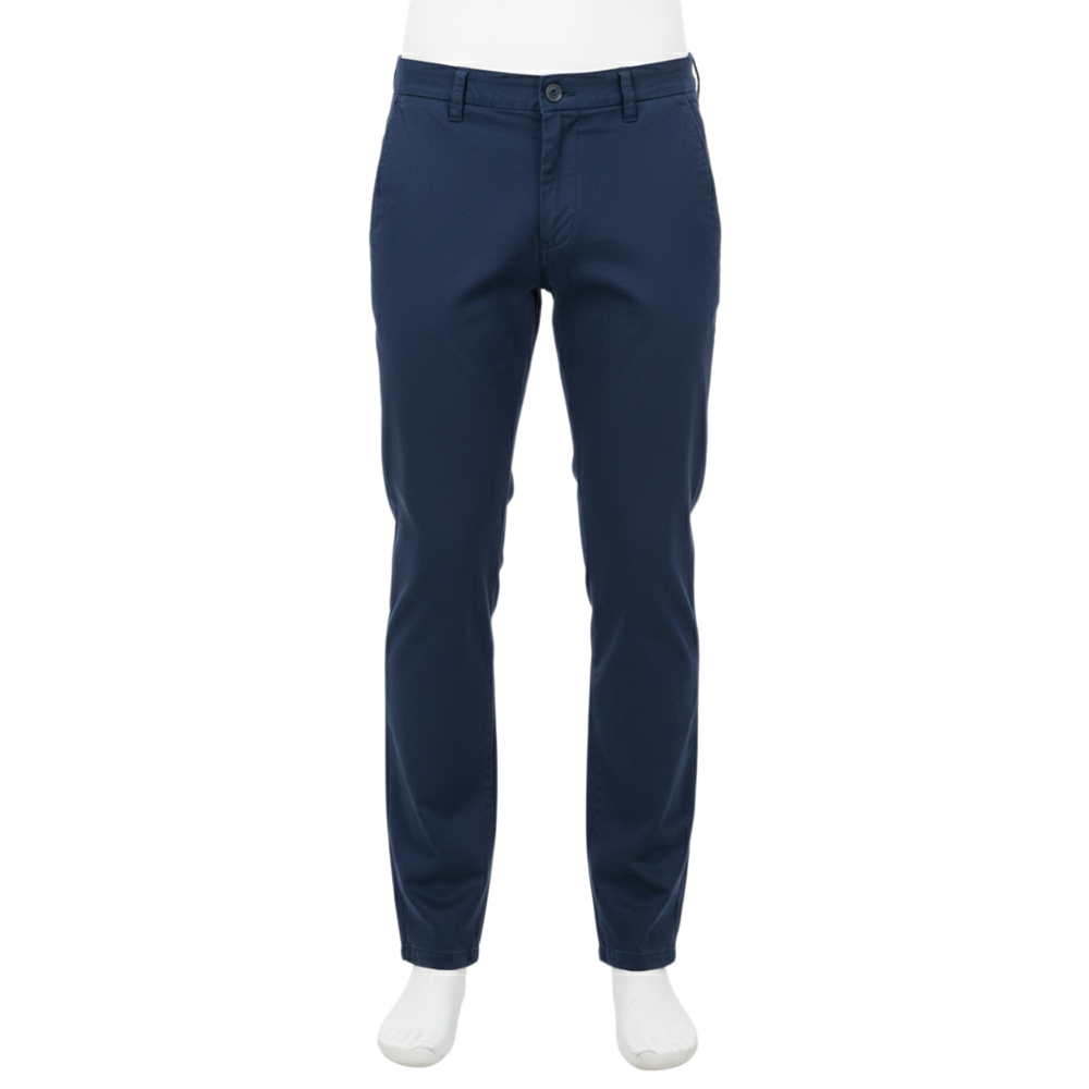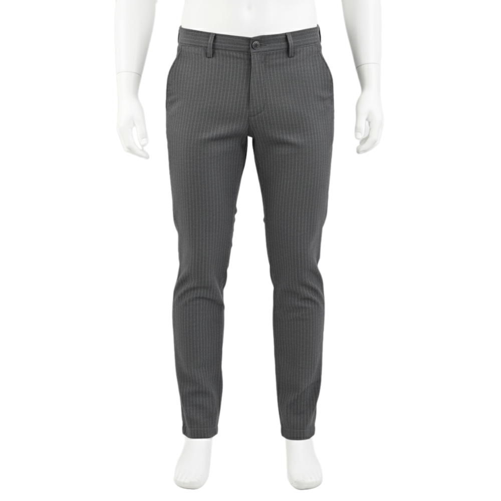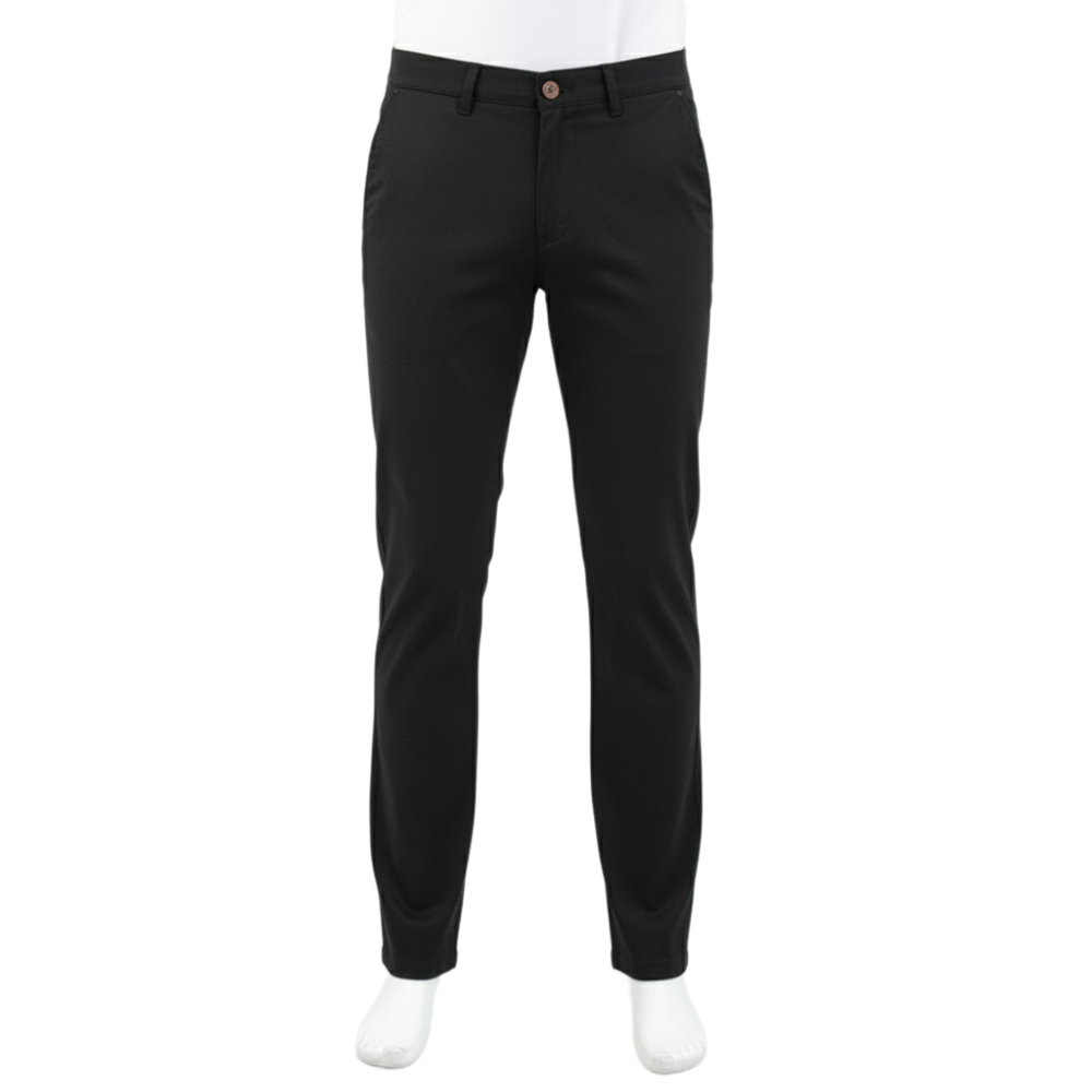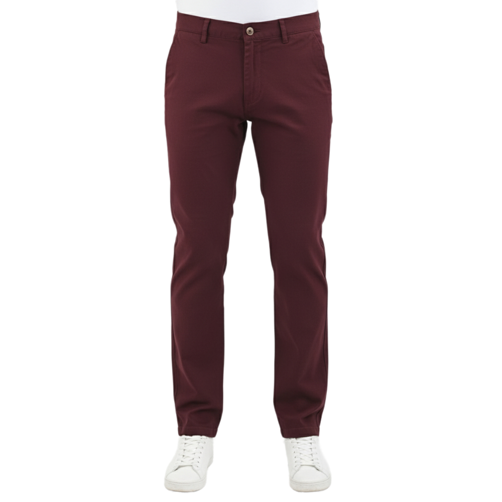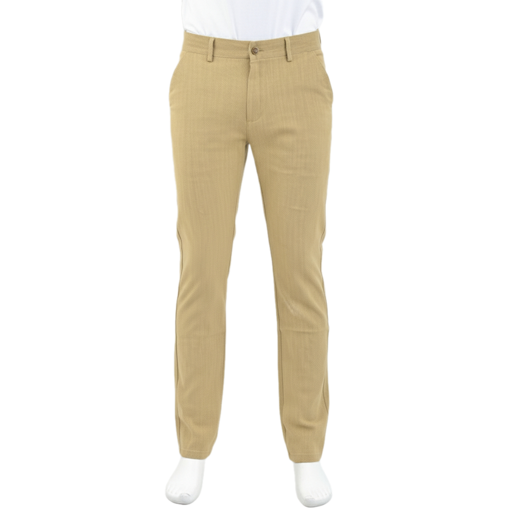 بنطلون رجالي كاجوال. يتميز ببيقصة المستقيمة أو ضيقة قليلاً ، مما يعطيه مظهراً عصرياً وأنيقاً. التفاصيل: يحتوي على زر أمامي بني/خشبي واحد، سحاب، وجيوب جانبية مائلة. الاستخدام: مناسب للإطلالات اليومية المريحة، أو للعمل .