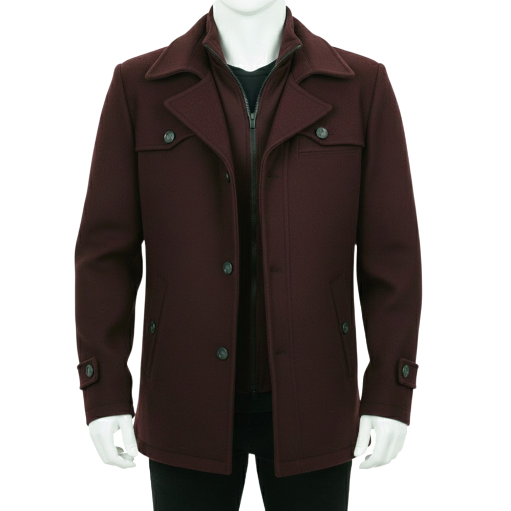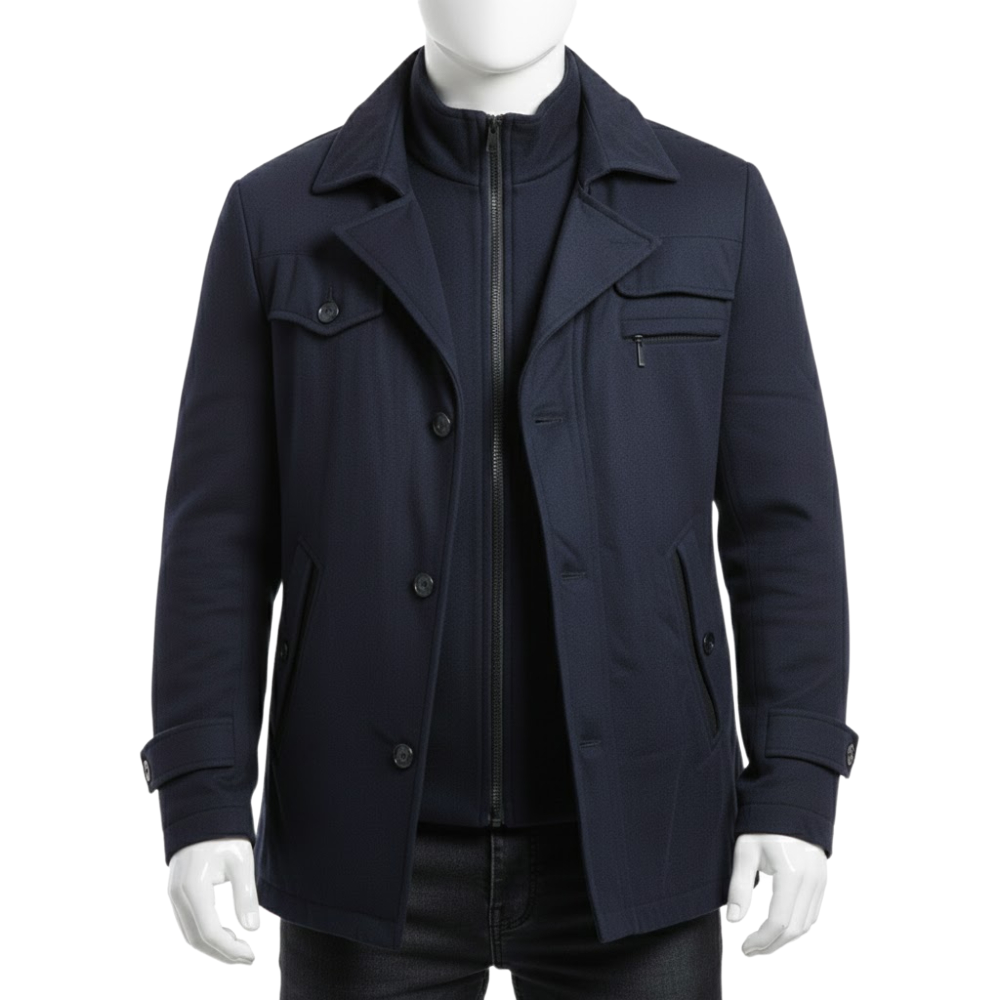 هذا المعطف الرجال يصل تقريباً إلى منتصف الفخذ أو الخصر)، وذو طابع كلاسيكي وعصري في آن واحد. |