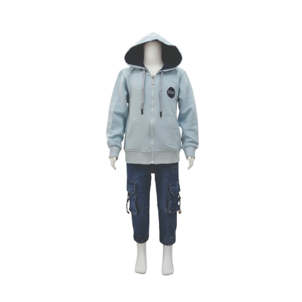 طقمٌ يمثل مزيجًا مثاليًا بين الراحة العالية والمظهر الأنيق وهي قطعة أساسية لا غنى عنها في خزانة ملابس الطفل ليجمع بين الدفء والمظهر العصري