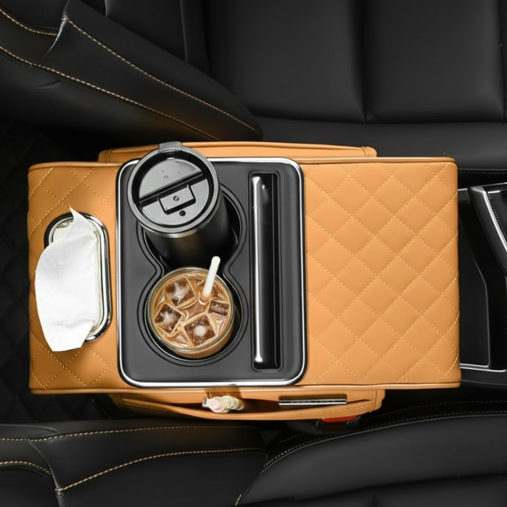 خفيفة الوزن 450 جرام وسهلة التركيب وتبلغ مقاسها 35 سم × 20 سم ومصنوعة من جلد فاخر وناعم مع خياطة مفصلة ومحشوة بإسفنجة سميكة ومريحة وهذا المنظم ليس مجرد إكسسوار، بل هو الحل الذكي الذي يعمل على تنظيم كافة احتياجاتك الأساسية في مكان ثابت