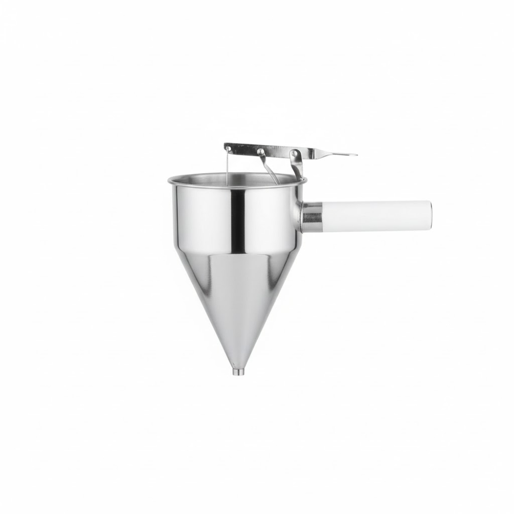 قمع توزيع يدوي يُستخدم في المطابخ والمخابز لصب السوائل، والصلصات، وعجائن الحلويات بدقة ونظافة، حيث يتيح لك التحكم في كمية التدفق ومنع التنقيط بضغطة زر واحدة.