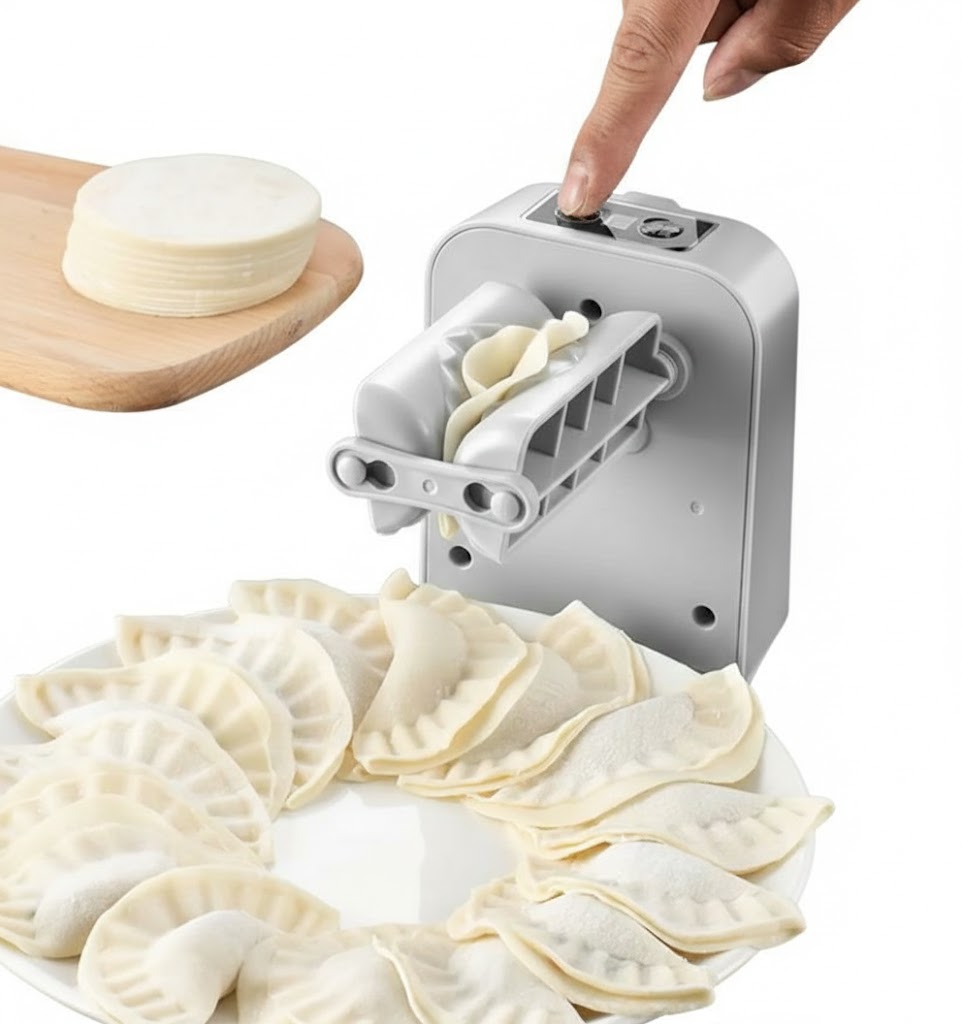 آلة كهربائية ذكية لصنع المعجنات والفطائر (مثل السمبوسة والزلابية) بشكل آلي وسريع. تعتمد فكرتها على وضع العجين والحشوة في القالب، لتقوم الماكينة بكبس وإغلاق العجينة بضغطة زر واحدة، مما يوفر الوقت والجهد ويضمن الحصول على أشكال متناسقة واحترافية دون الحاجة لمهارة يدوية.