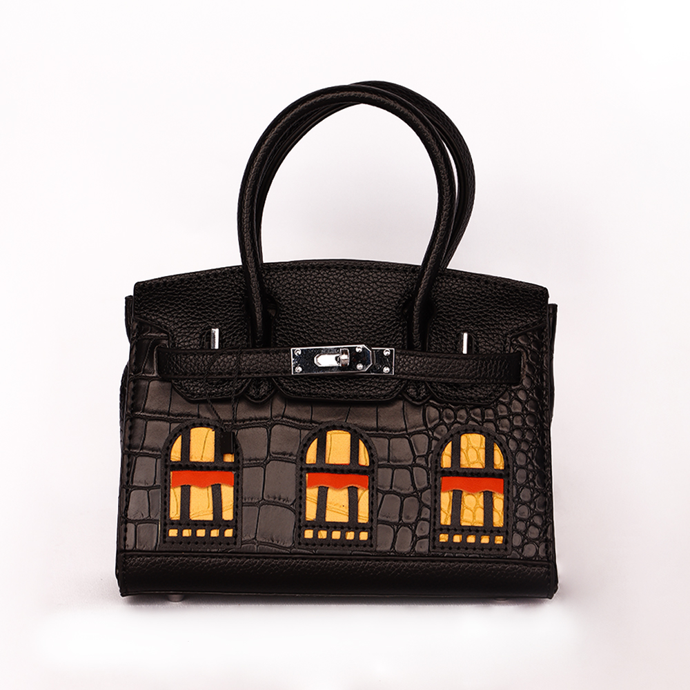حقيبة يد فاخرة بتصميم فني مميز يجمع بين الأناقة الكلاسيكية واللمسة العصرية، تتميز بزخارف تشبه النوافذ تضيف طابعًا فريدًا ولافتًا، مثالية للسيدات الباحثات عن التميز والرقي.