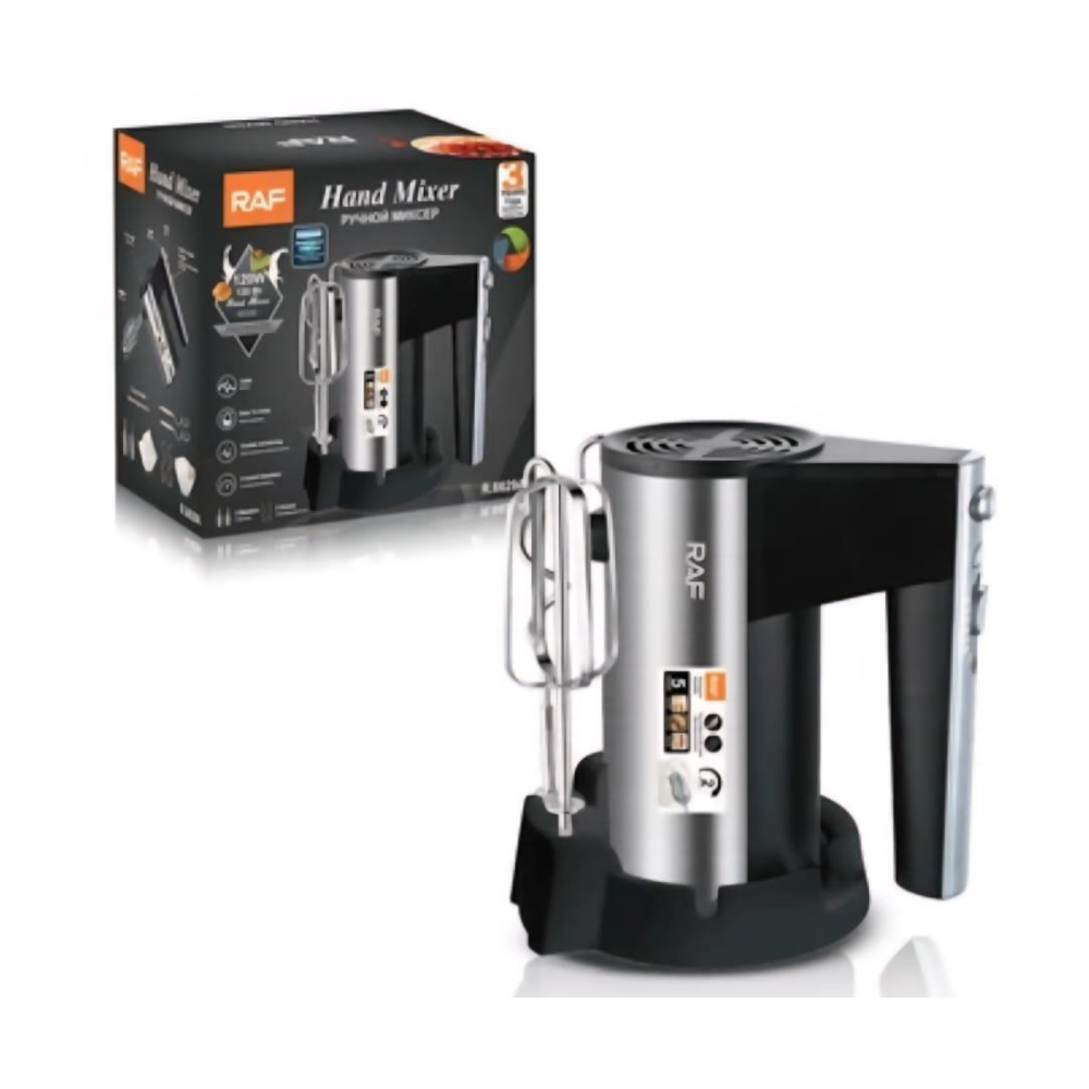 خلاط كهربائي متعدّد الاستخدامات، مصمم بأسلوب عصري يجمع بين الكفاءة والسهولة في الاستخدام. يعمل بمحرك يوفر سرعات متفاوتة للتحكم في عملية الخلط والخفق، ويأتي مع قطع معدنية قابلة للفصل مخصصة للتعامل مع المكونات المختلفة. يتميز الجهاز بوجود قاعدة خاصة تتيح تنظيمه وتخزينه بشكل مرتب مع ملحقاته، مما يجعله أداة عملية لتحضير الحلويات والمعجنات في المطبخ.