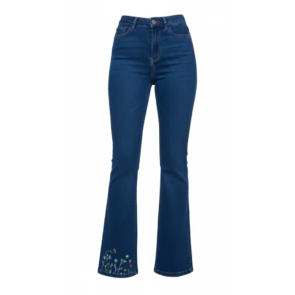 بنطلون دينيم كلاسيكي بلمسة حيوية، مصمم بقصّةالأرجل الواسعة من الأسفل التي تمنح مظهراً طويلاً ومتناسقاً للجسم.