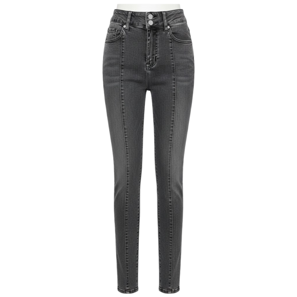 بنطال نسائي بقصة ضيقة، يتميز بتصميم عصري يبرز قوام الجسم مع تفاصيل خياطة طولية أمامية تمنح مظهراً أكثر طولاً وأناقة.