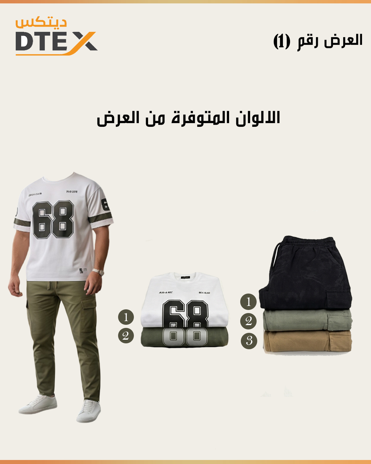 طقم شبابي أنيق بتصميم عصري يمنحك إطلالة كاجوال مميزة ومريحة. يتكون من تيشيرت بطباعة رقم 68 مع بنطال عملي بتصميم عصري مناسب للاستخدام اليومي والخروجات