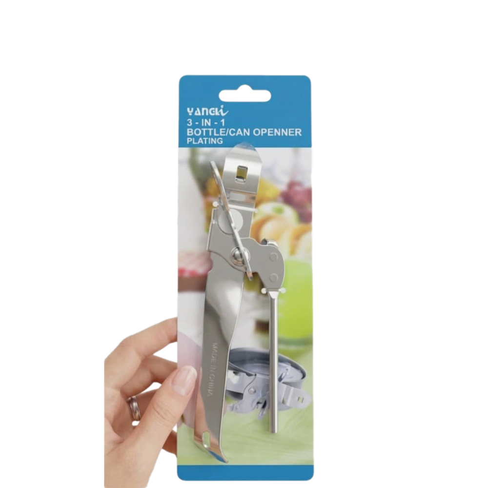 أداة مطبخ معدنية متكاملة صُممت لفتح العلب والزجاجات بسهولة وكفاءة عالية.