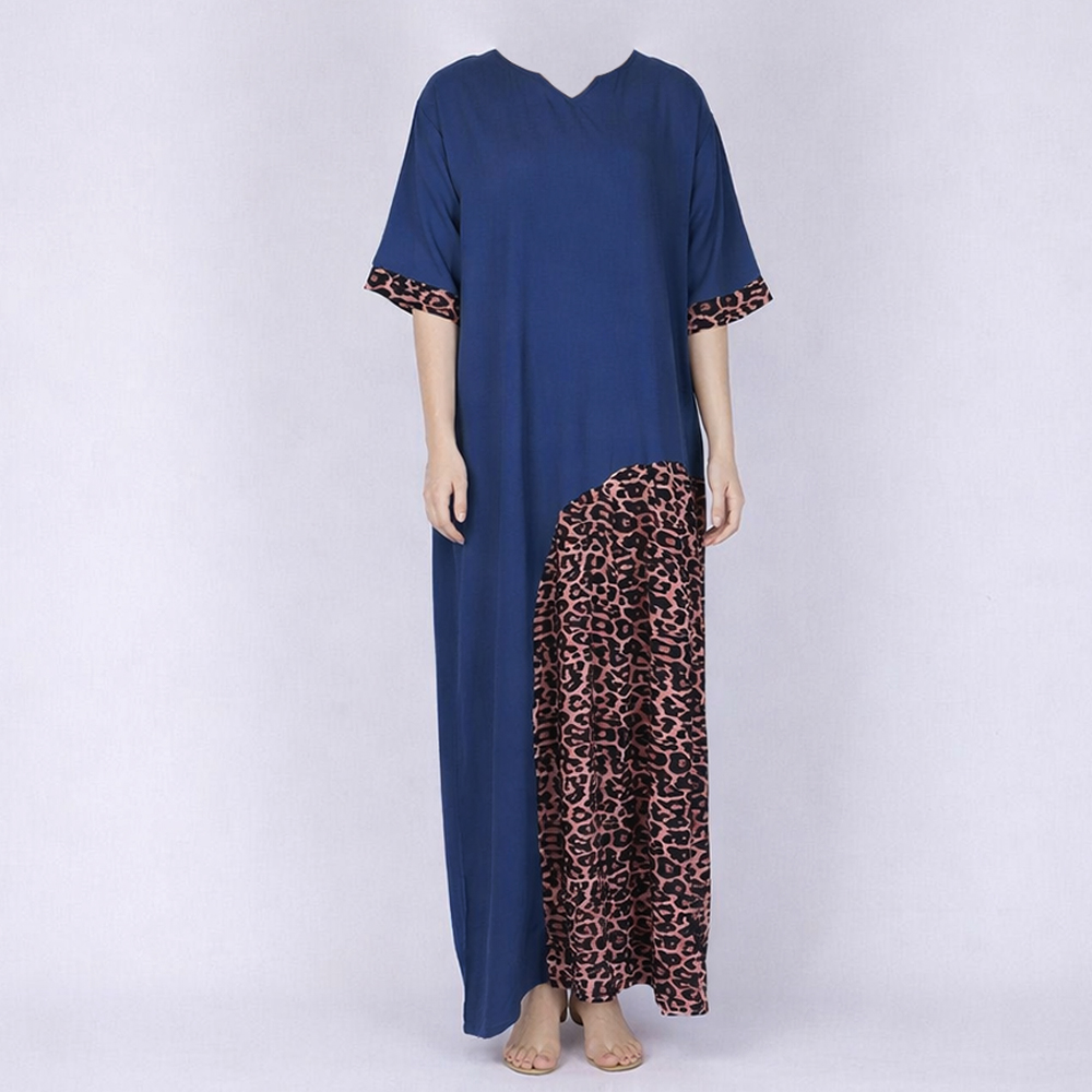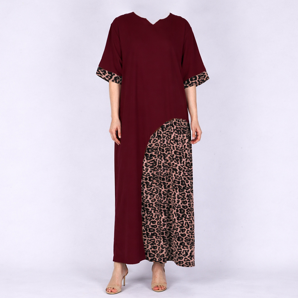 جلابية نسائية مريحة وأنيقة بتصميم عصري مع تفاصيل بنقشة ليوبارد تضيف لمسة مميزة وجذابة. مناسبة للبيت أو للخروج الخفيف، بقماش ناعم وانسيابي يوفر راحة طوال اليوم.