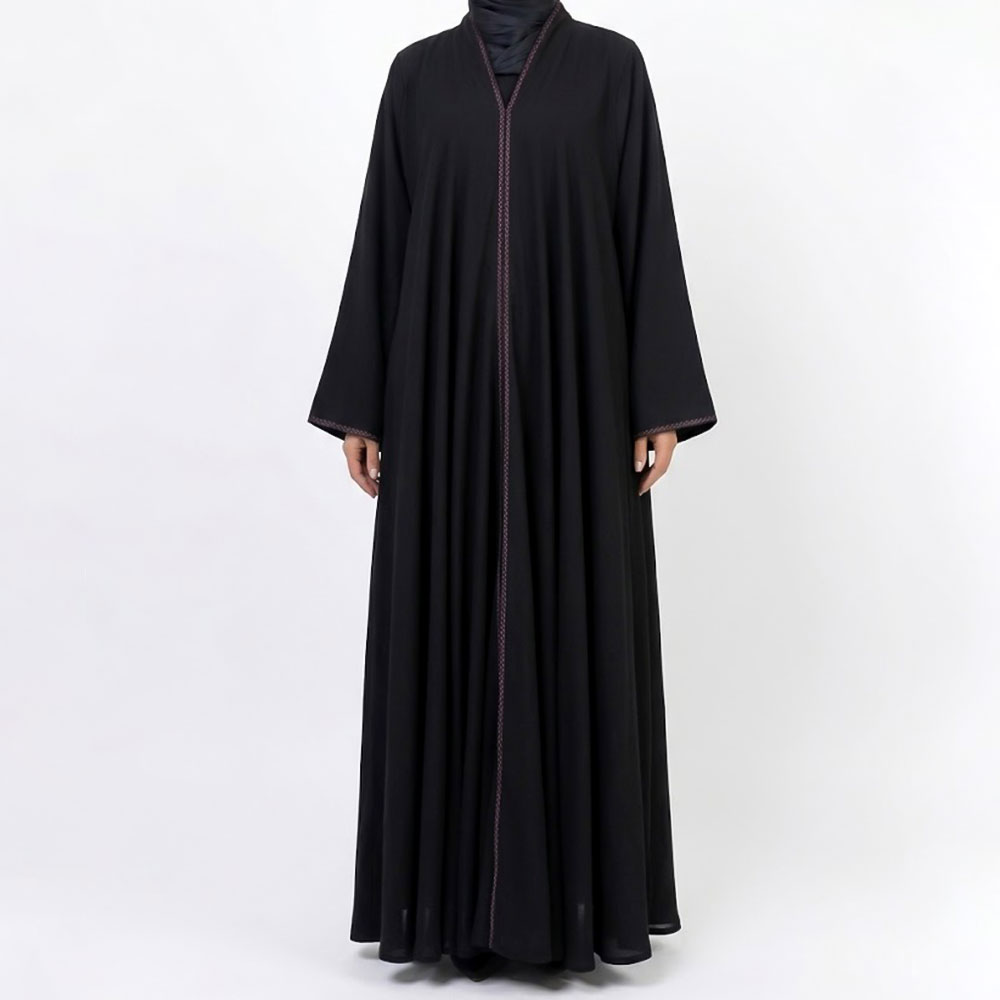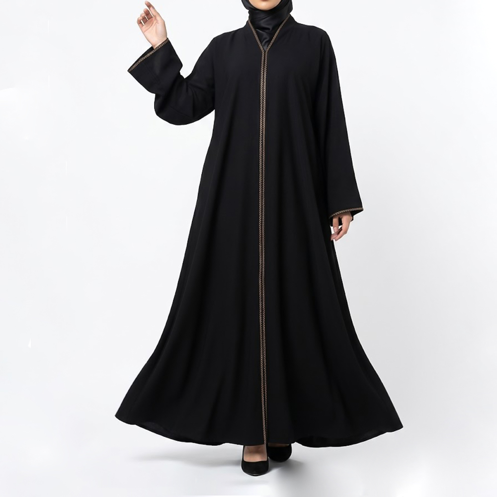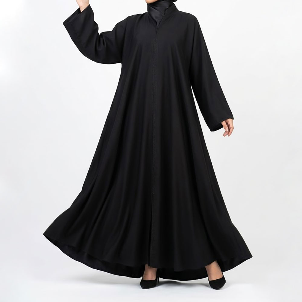 عباية كلاسيكية بتصميم أنيق وواسع يمنحك إطلالة محتشمة وعصرية في نفس الوقت. تتميز بقماش ناعم وانسيابي مع ياقة عالية وأكمام طويلة، ما يجعلها خيارًا مثاليًا للارتداء اليومي والمناسبات.