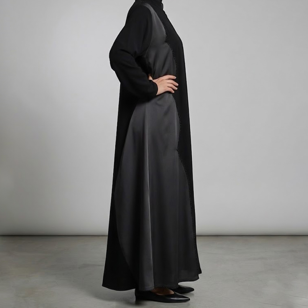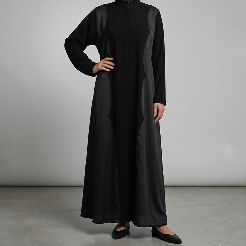 عباية طويلة بقصة مستقيمة مع تفاصيل خياطة طولية أنيقة |